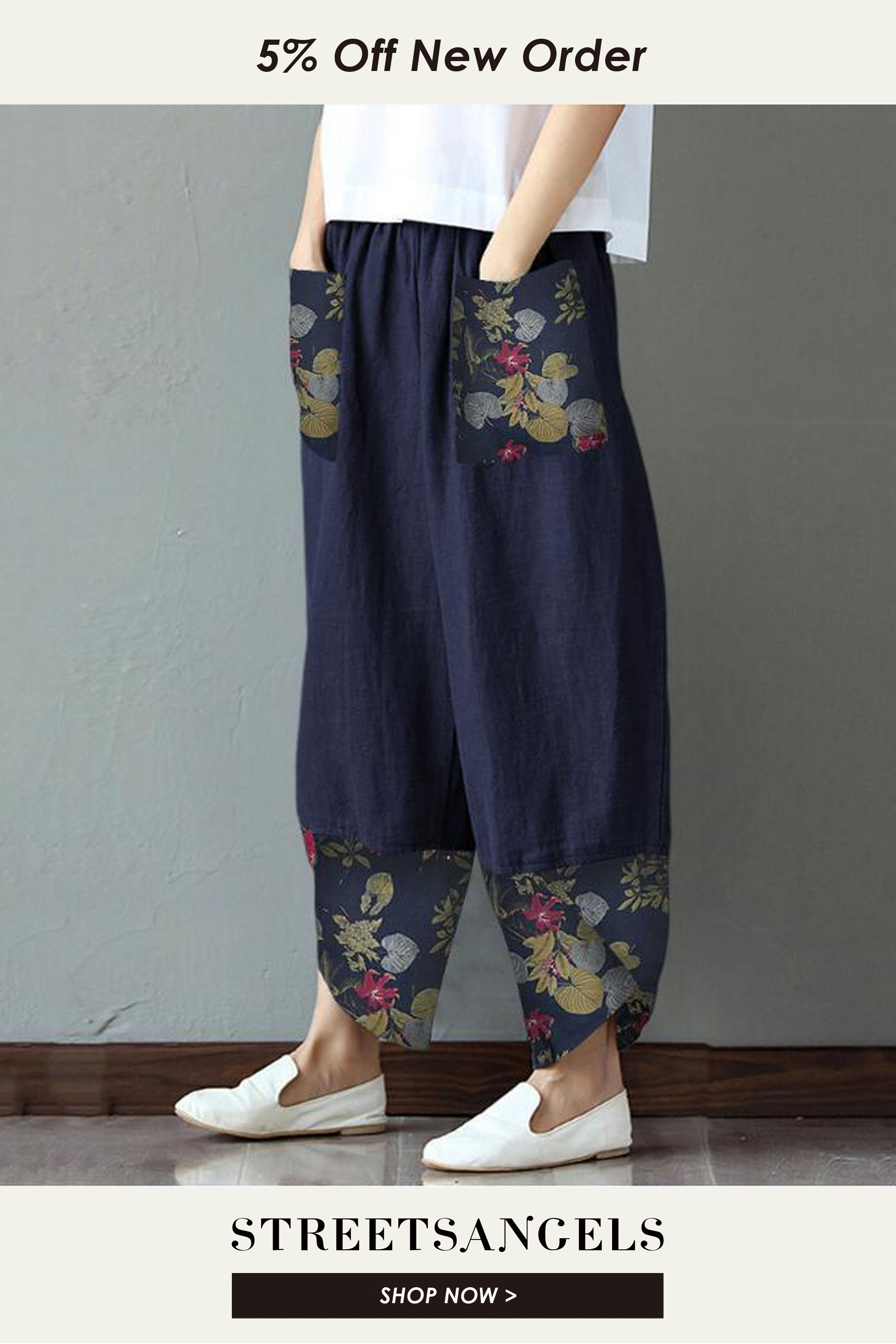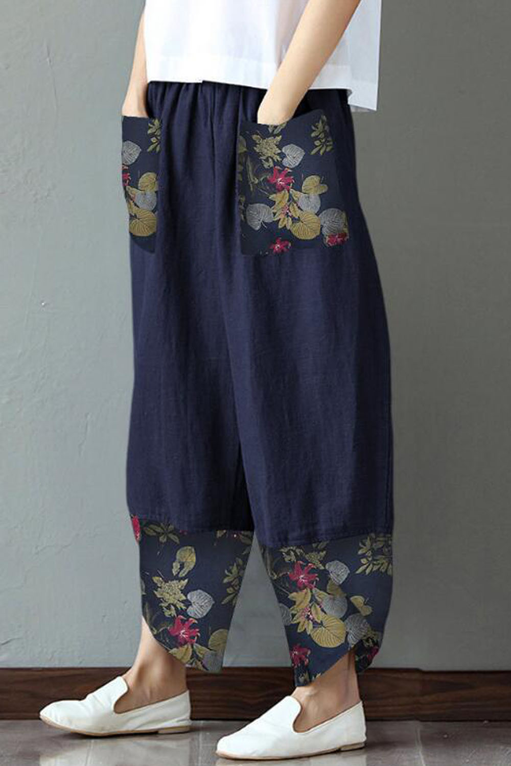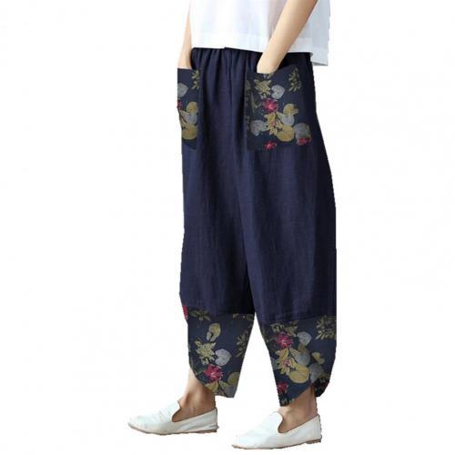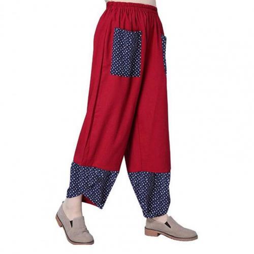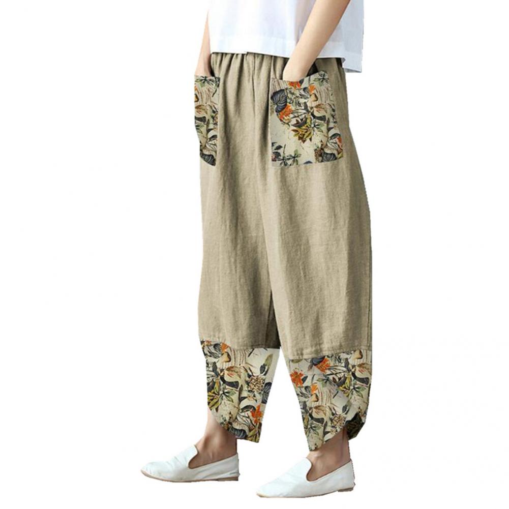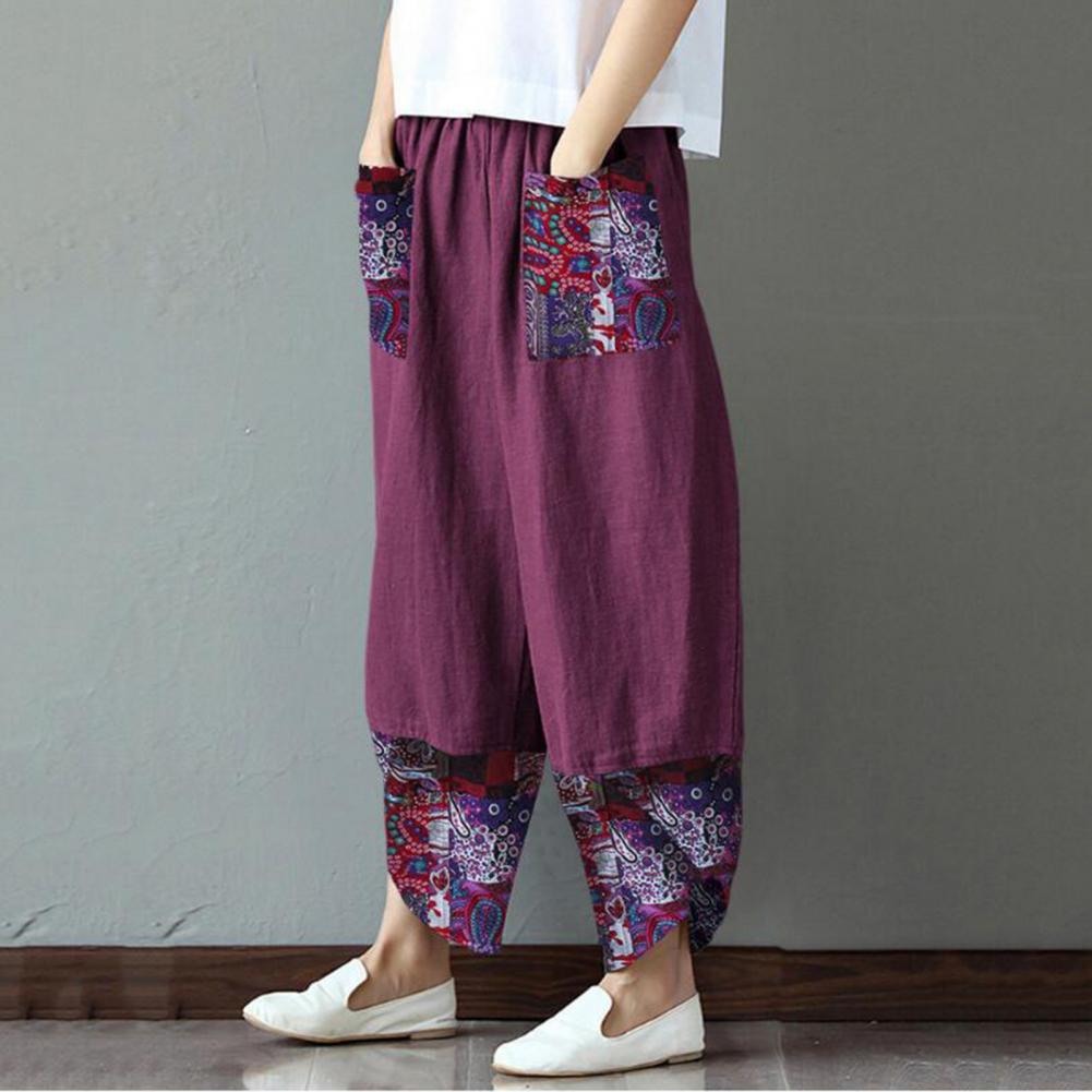 Fashion Ethnic Print Casual Patchwork Pocket Loose Wide Leg Pants
