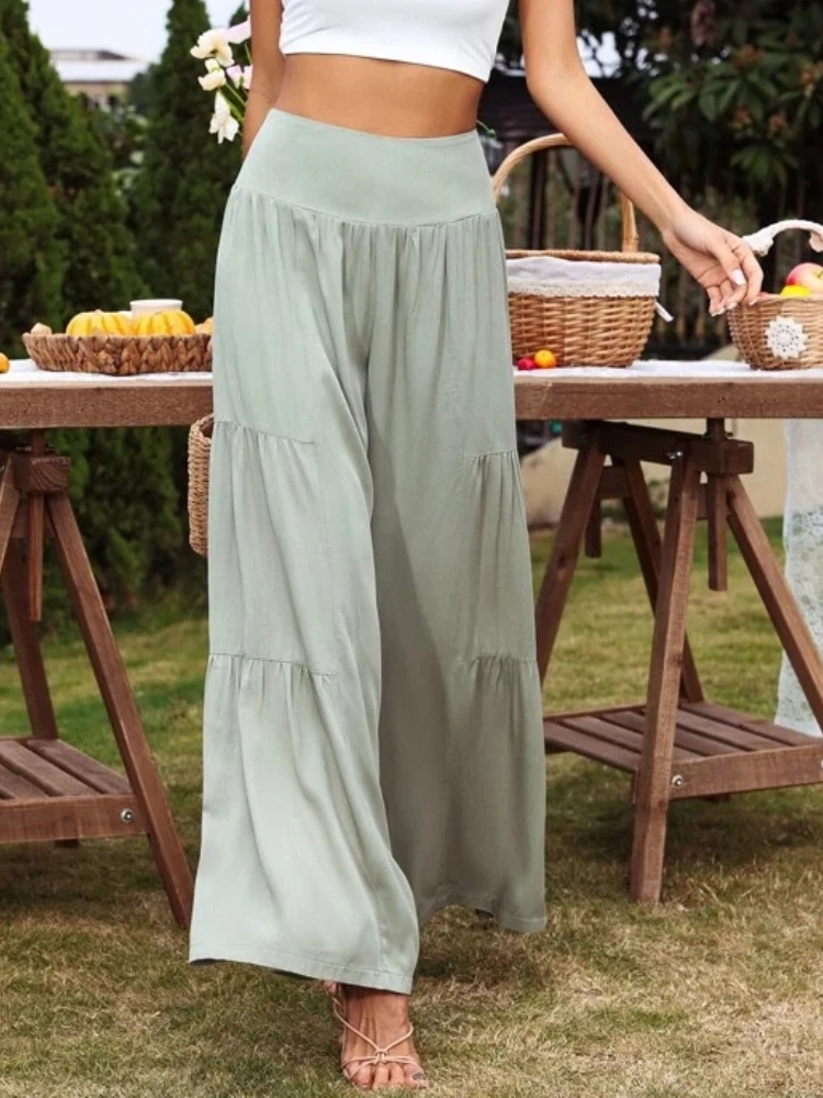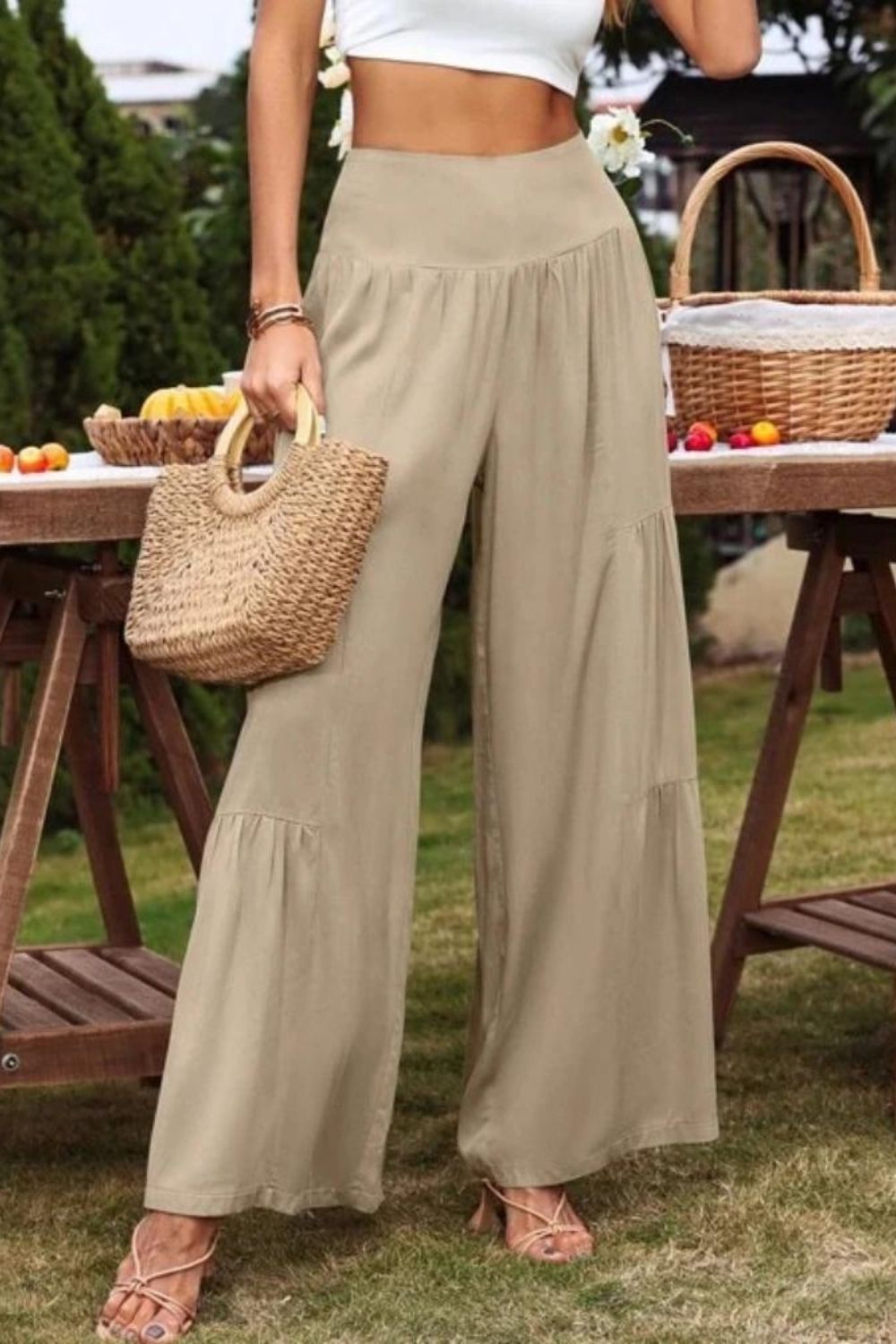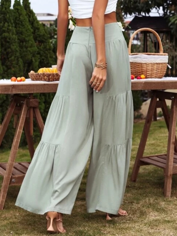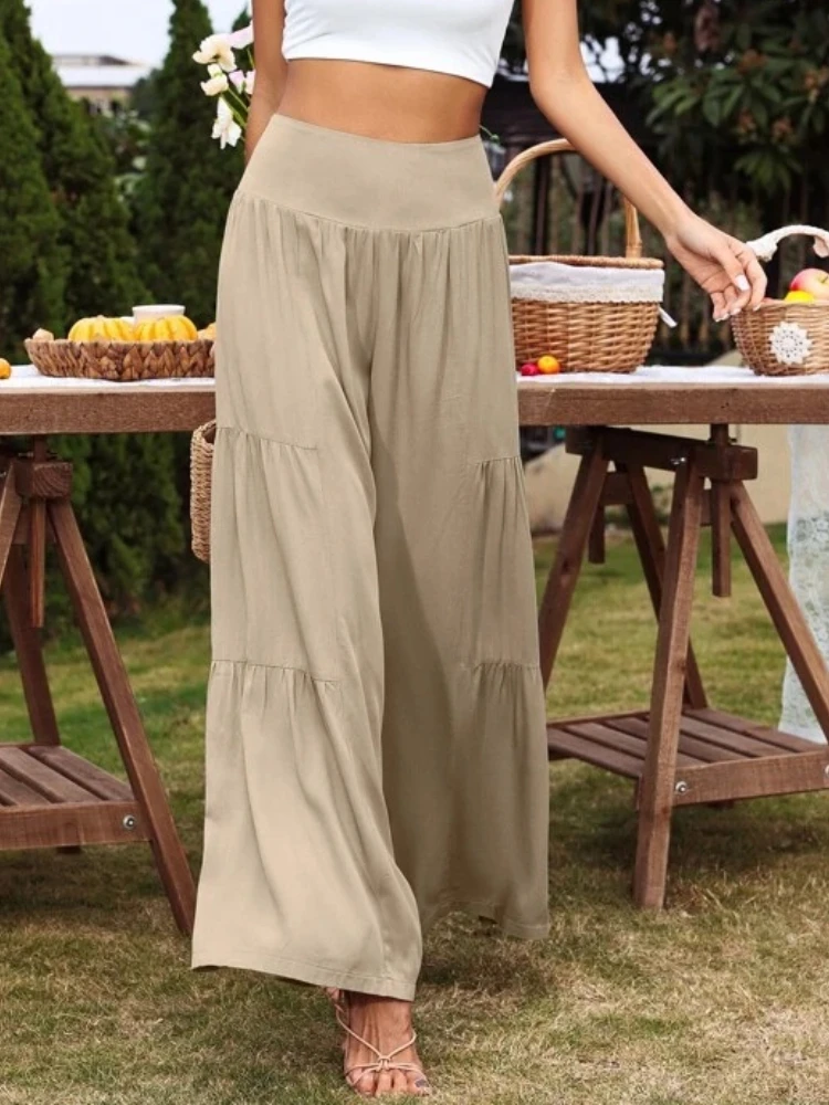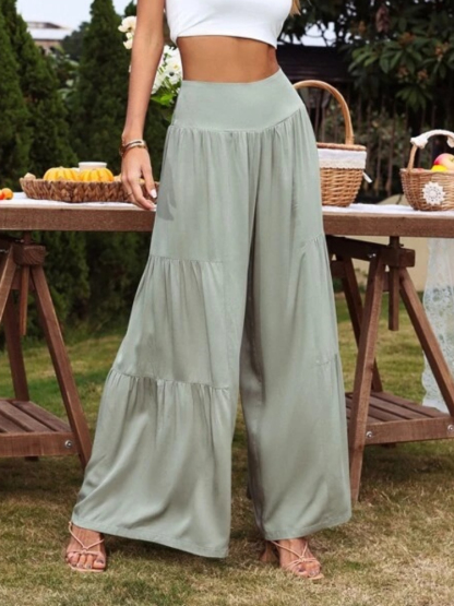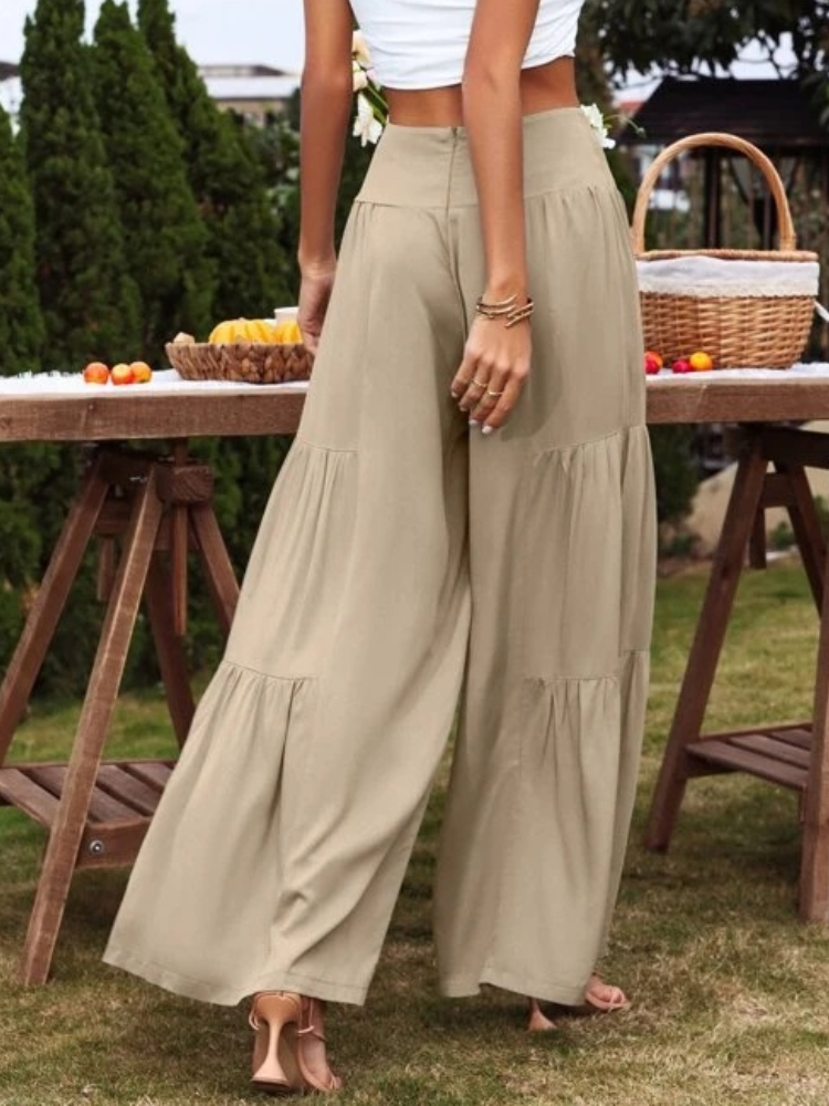 High Waist Wide Leg Casual Loose Solid Color Cotton Workwear Pants