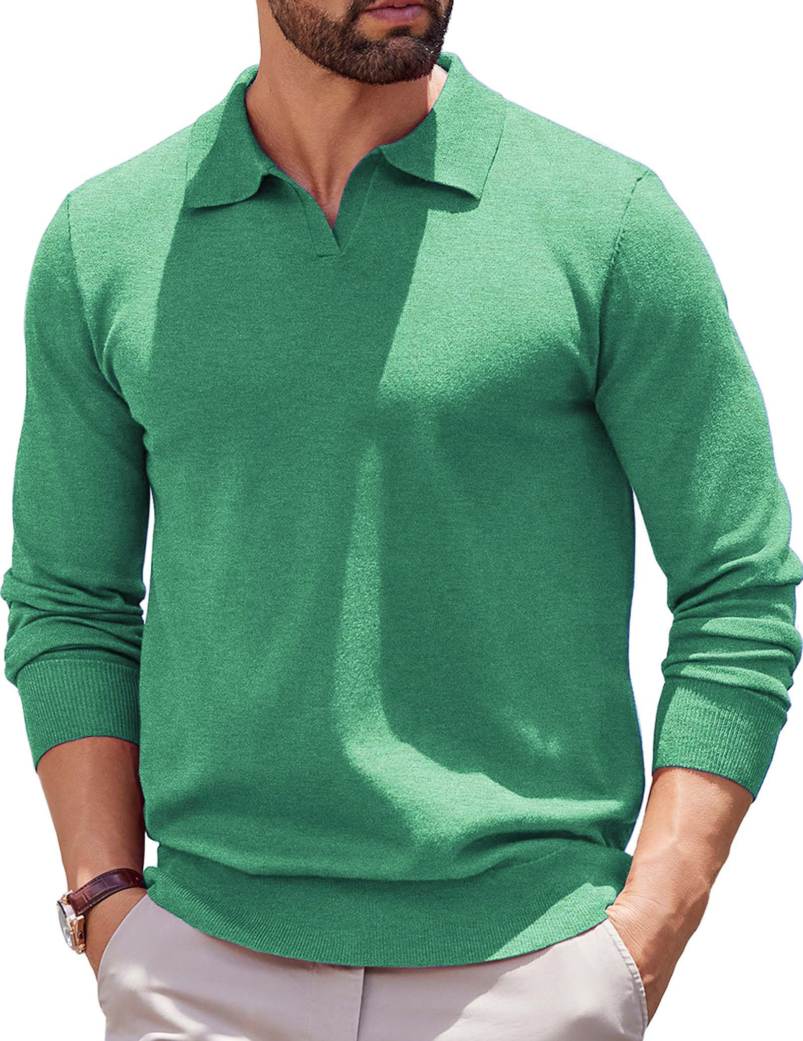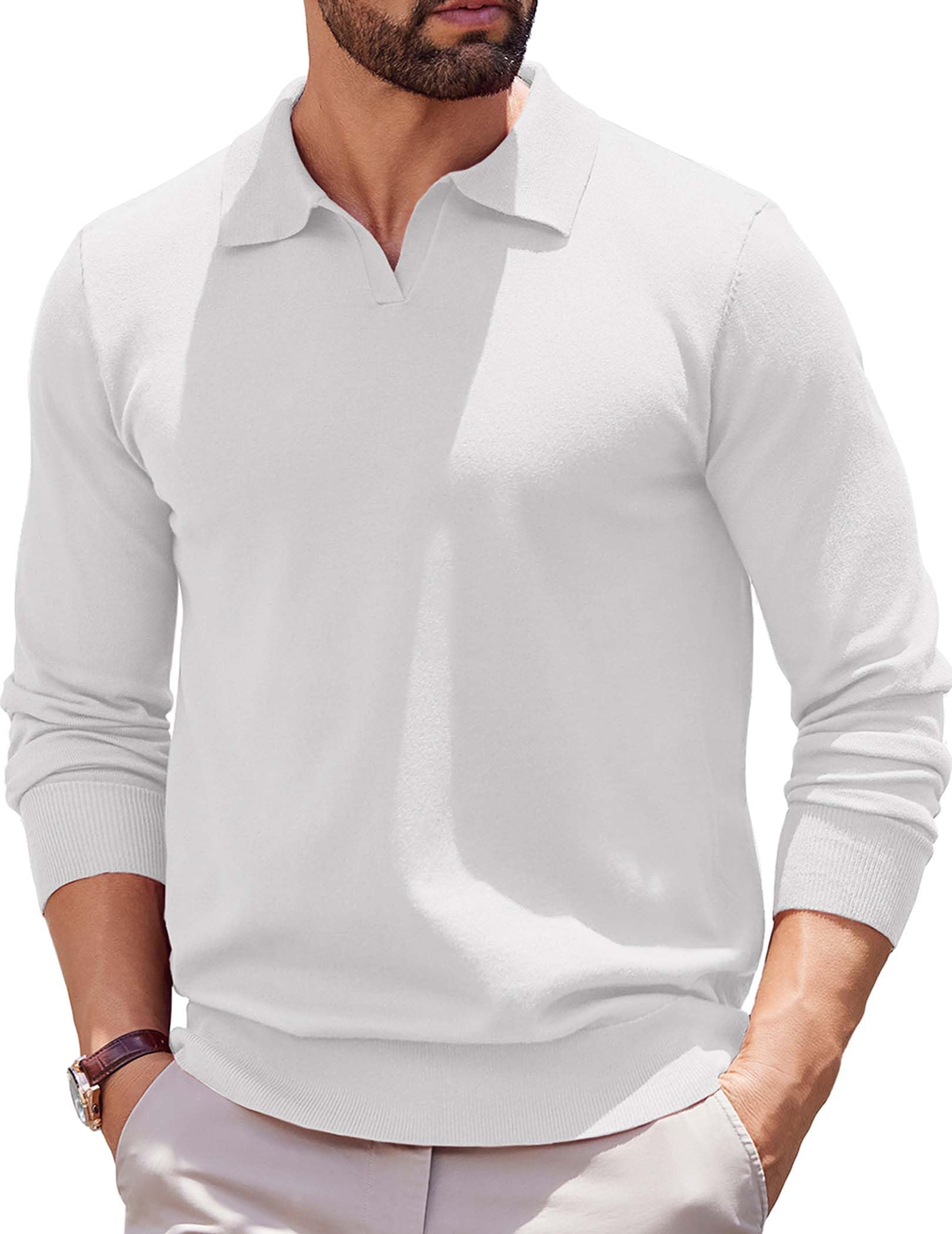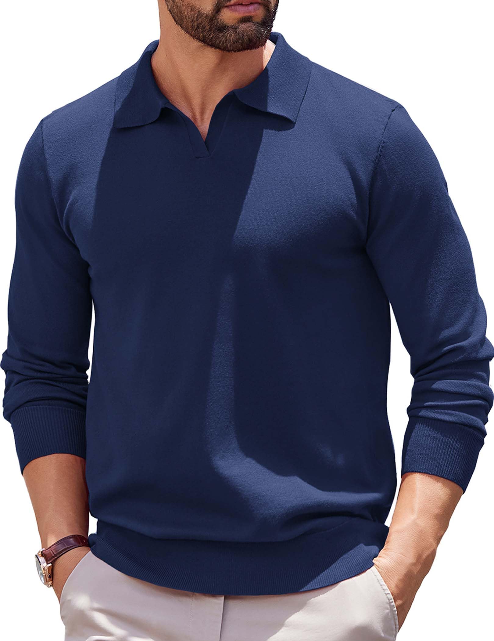 Men's V-neck Basic Long-sleeved Polo Top