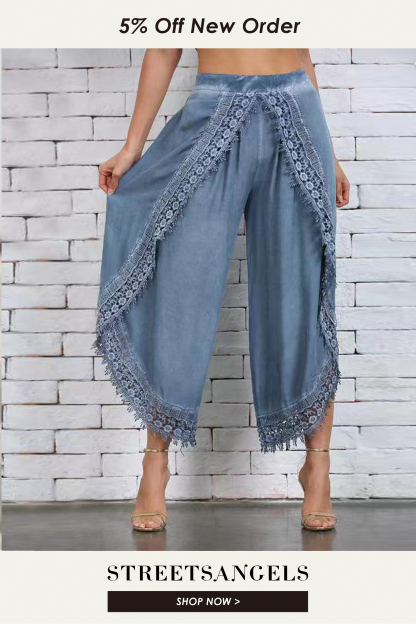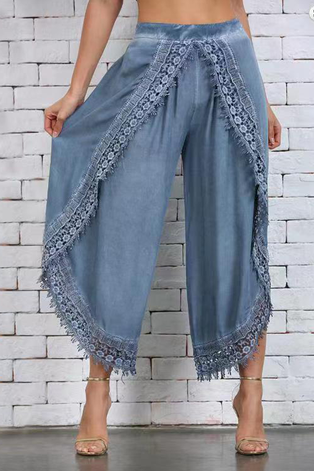 Solid Color Fashion Loose Harem Lace Lightweight Wide Leg Pants