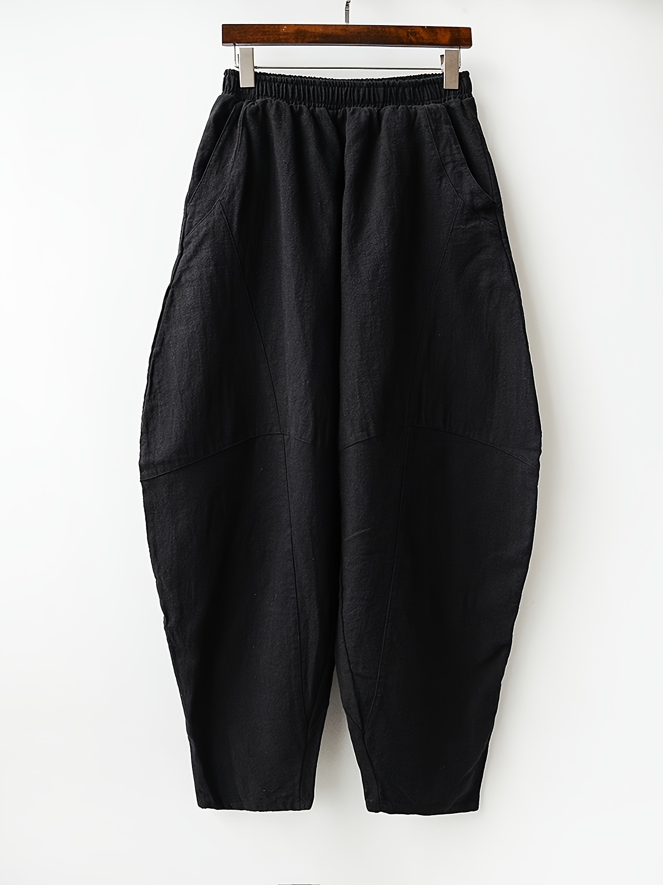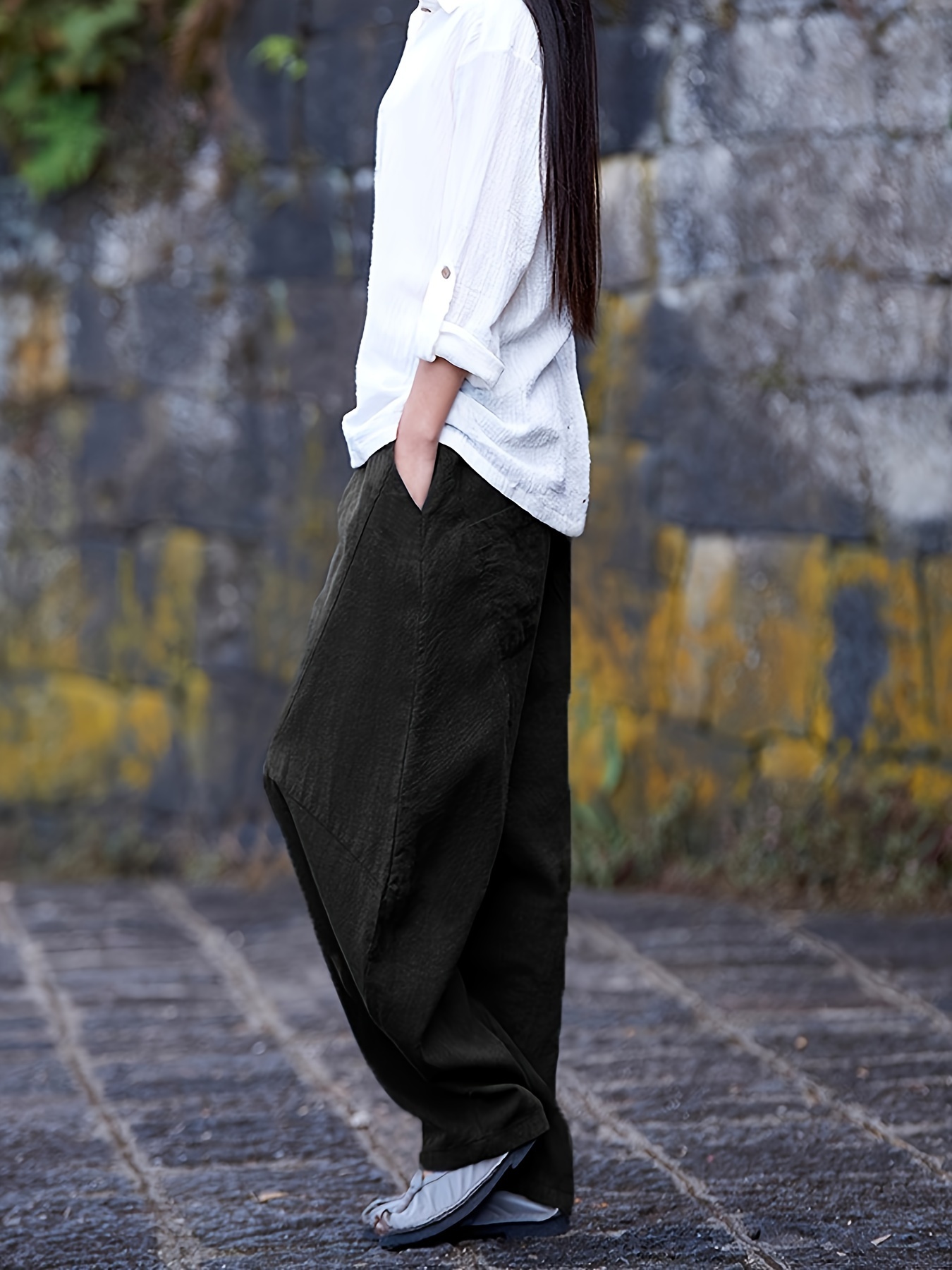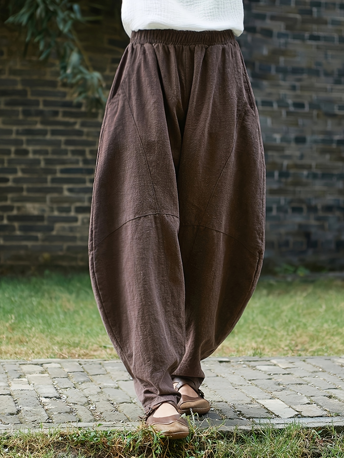 Solid Elastic Waist Baggy Pants, Casual Pocket Harem Pants For Spring & Summer, Women's Clothing