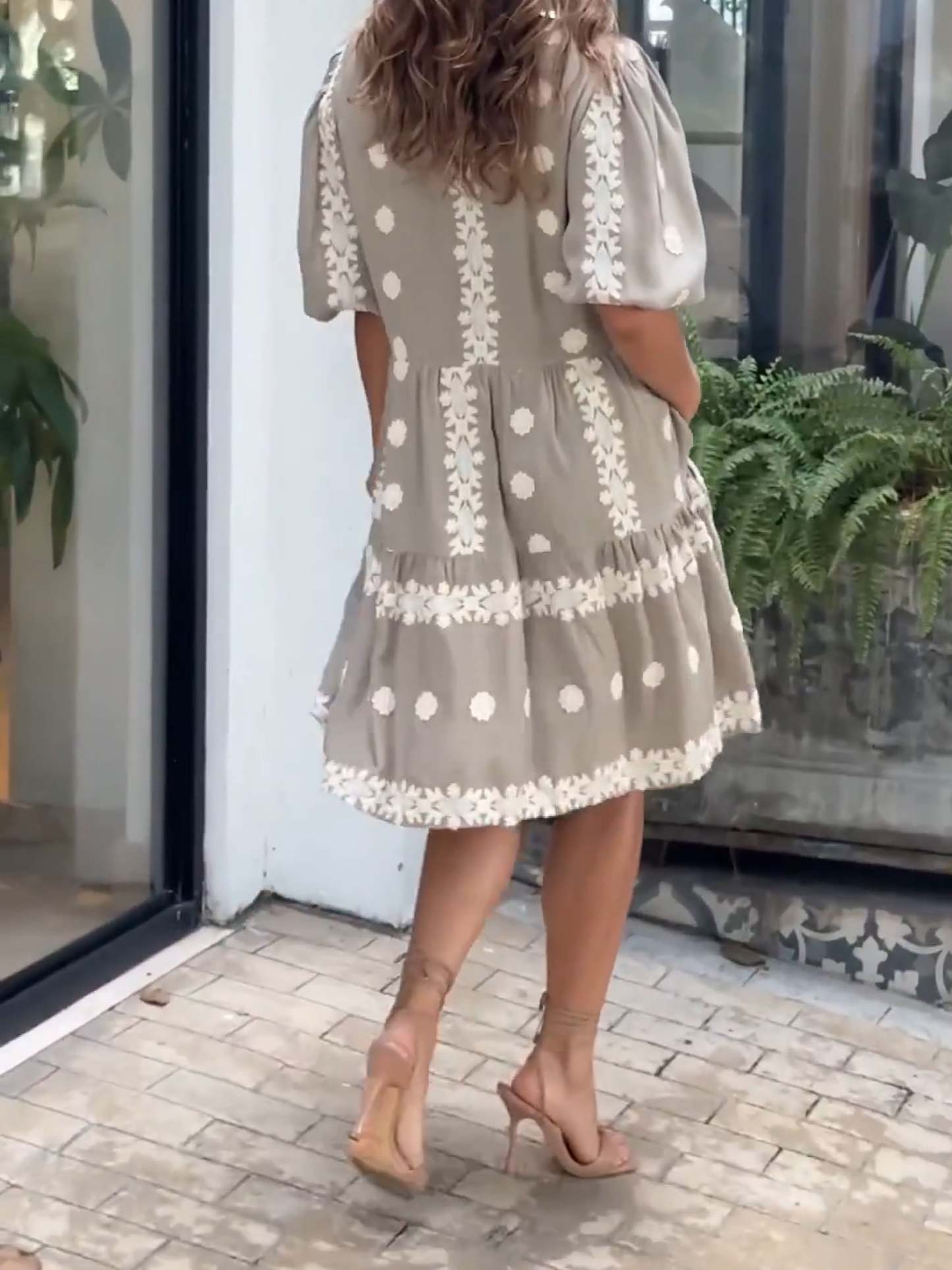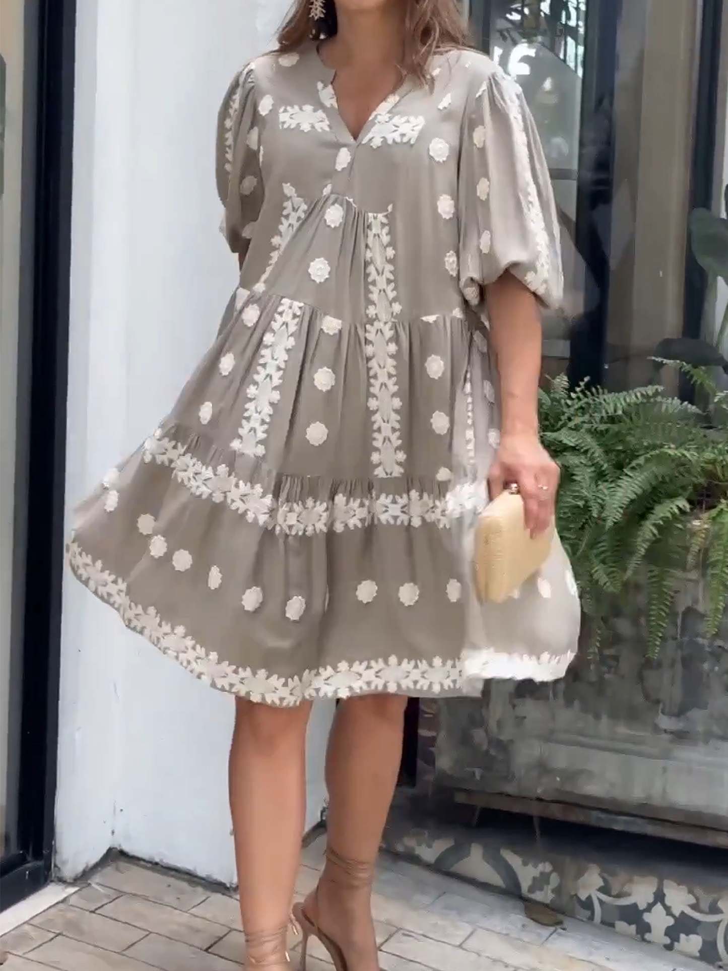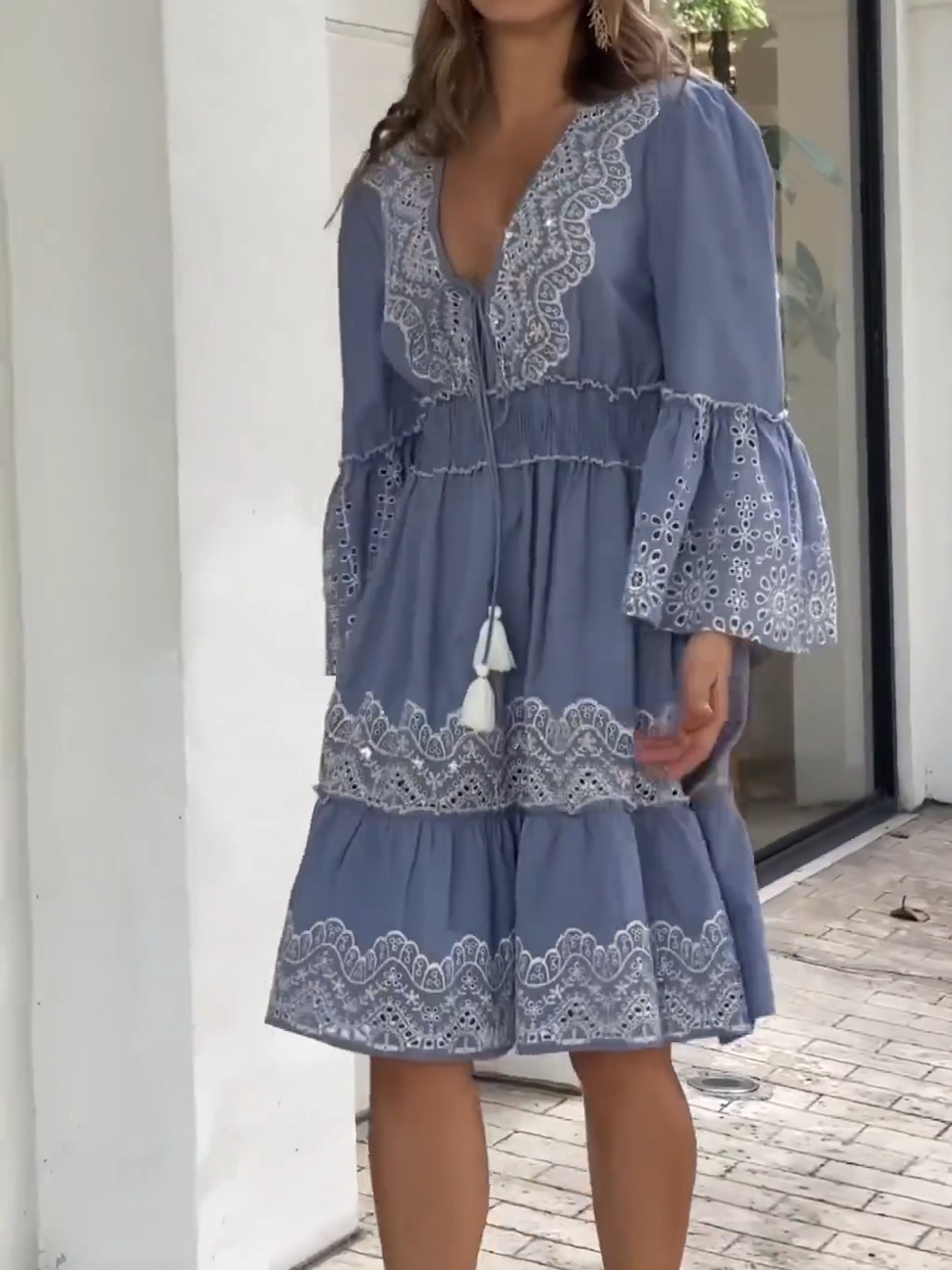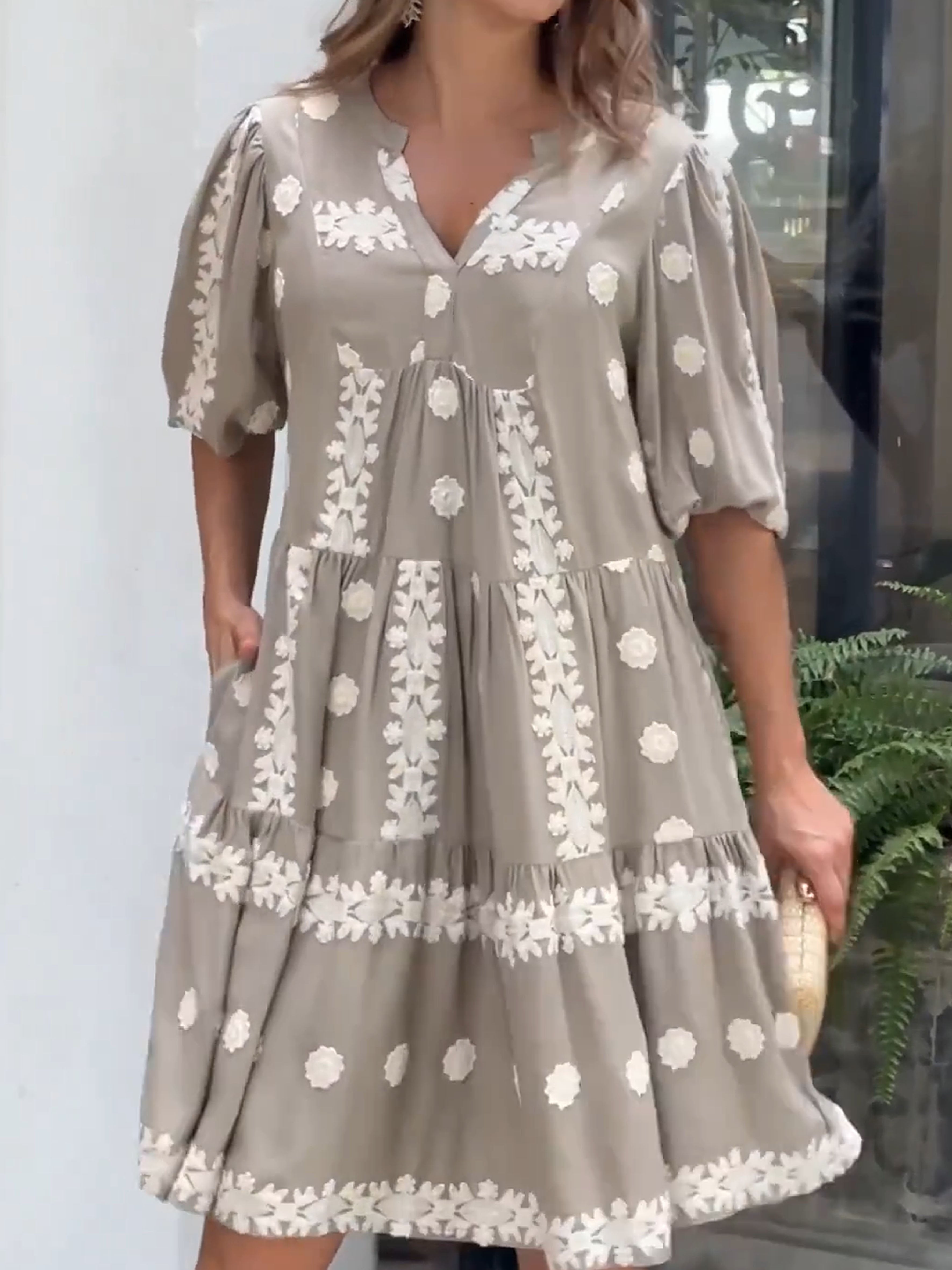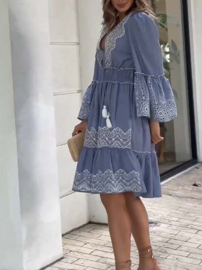 Women's Cotton and Linen V-neck Dress