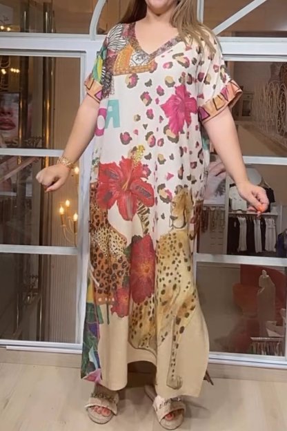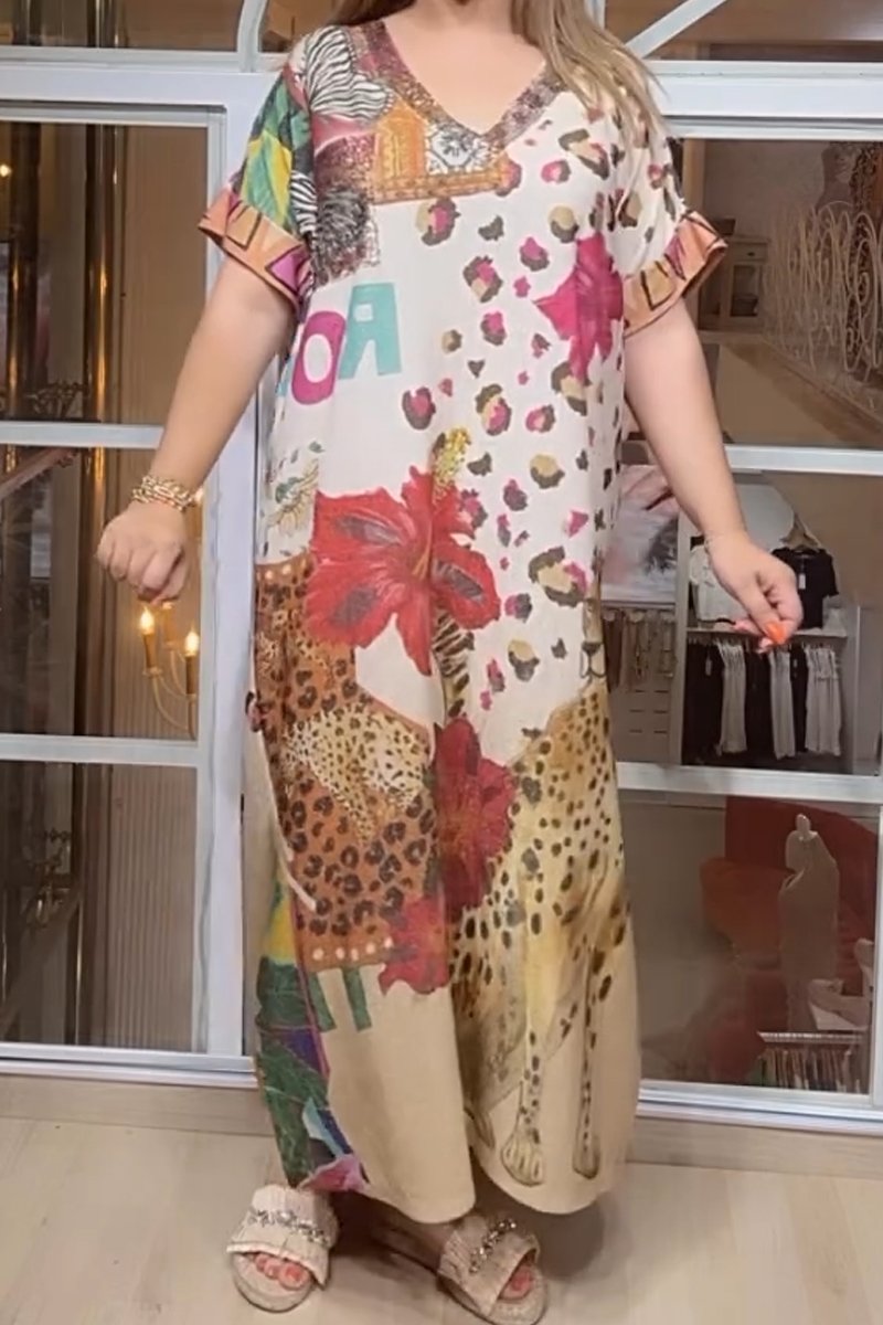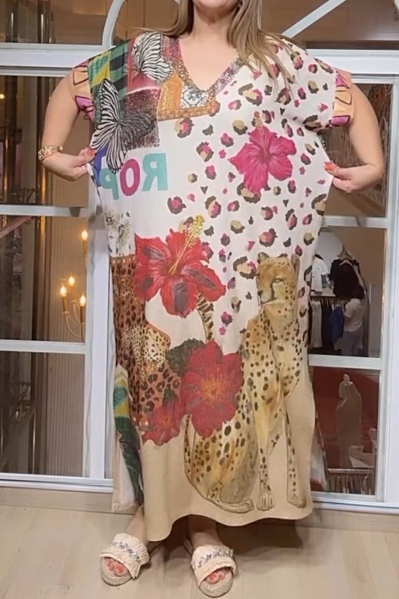 Women's printed sequin embellished V-neck dress