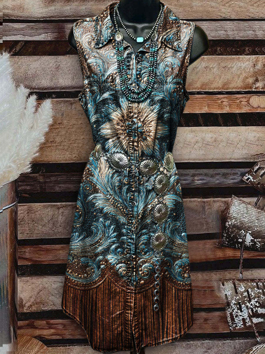 Women's Vintage Floral Print Casual Sleeveless Dress