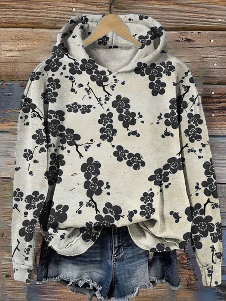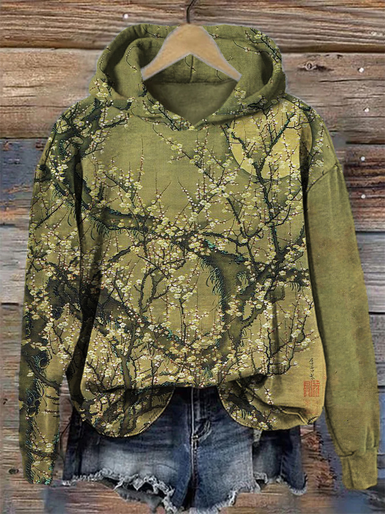 Plum Flowers Japanese Art Vintage Cozy Hoodie
