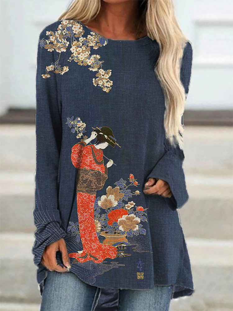 Cherry Blossom Japanese Lino Art Cozy Tunic