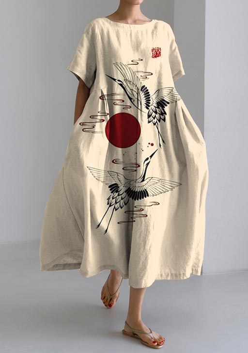 Ink Crane Japanese Art Print Linen Long Shirt