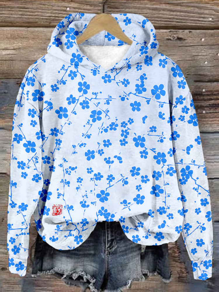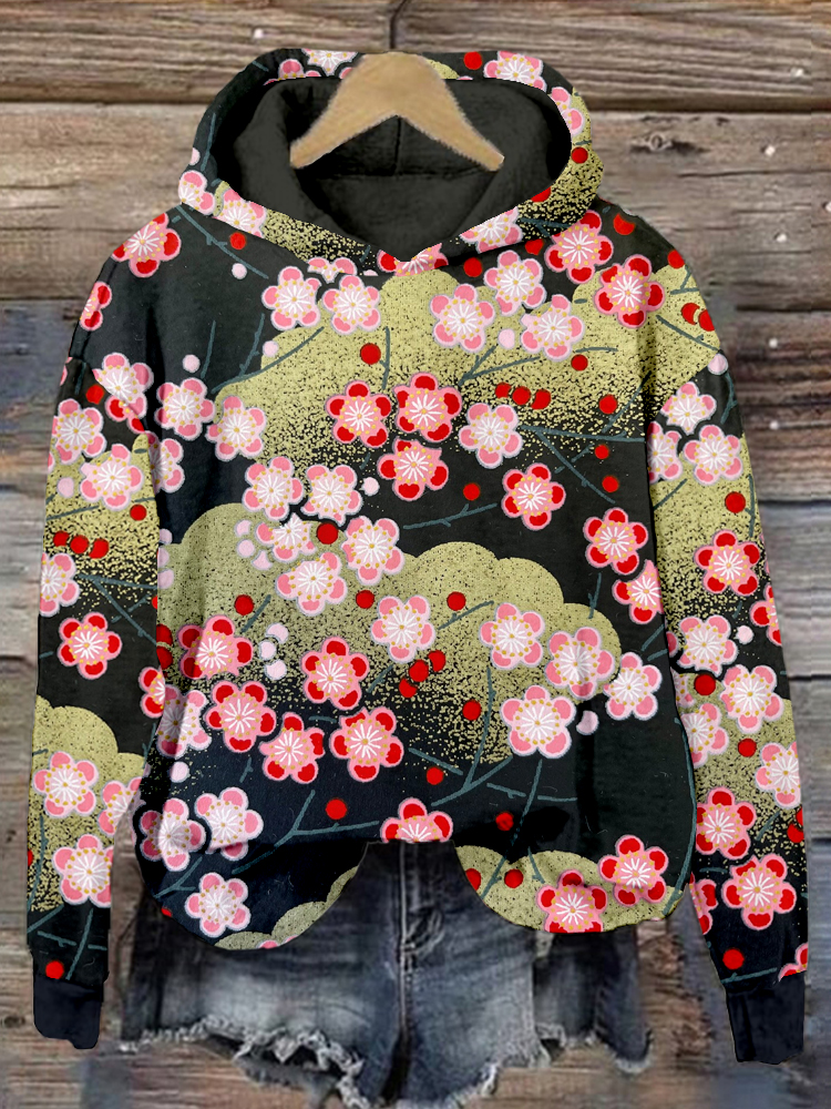 Plum Blossom Sea Waves Japanese Pattern Cozy Hoodie