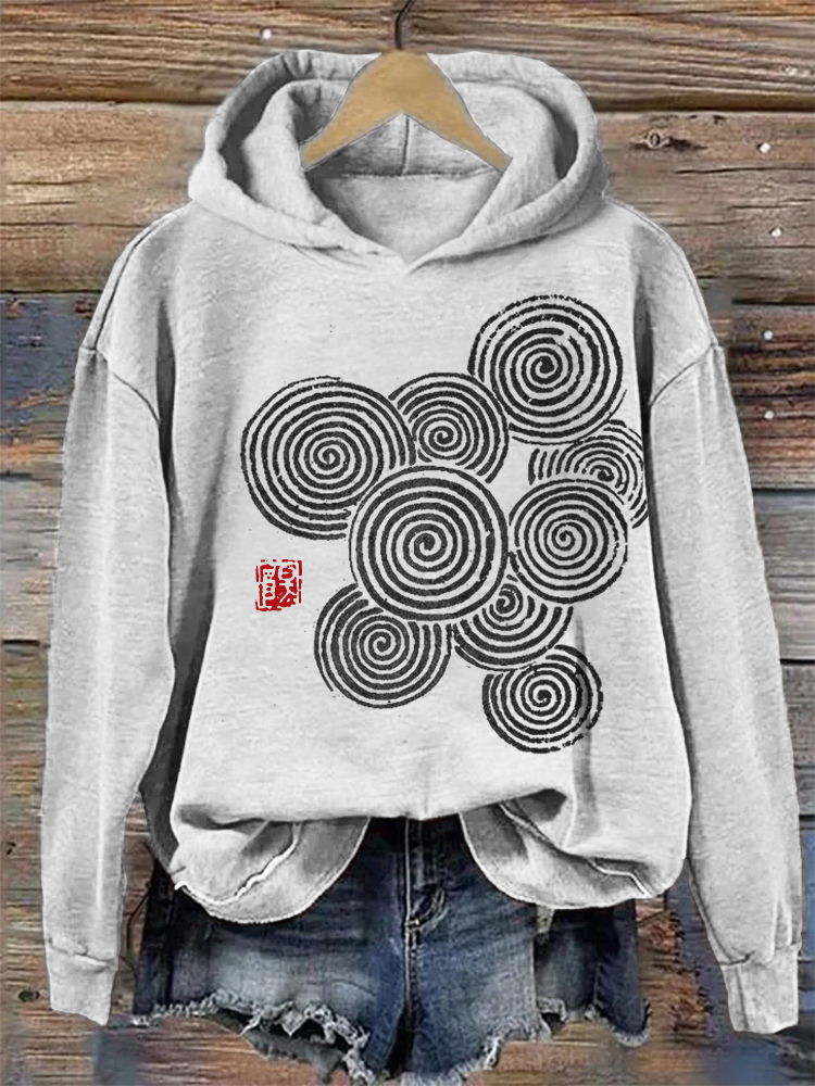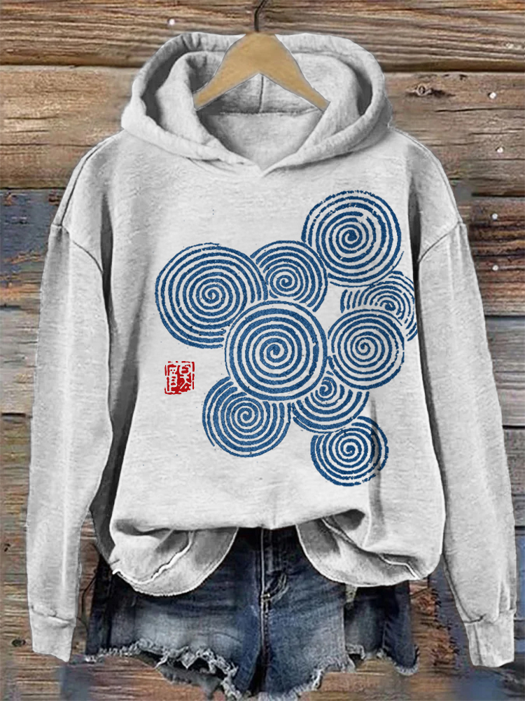 Vintage Japanese Art Printed Casual Hoodie