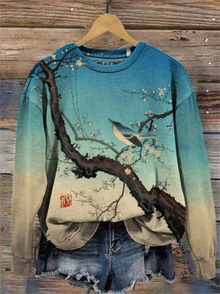 Bird on Plum Tree Japanese Art Gradient Sweatshirt