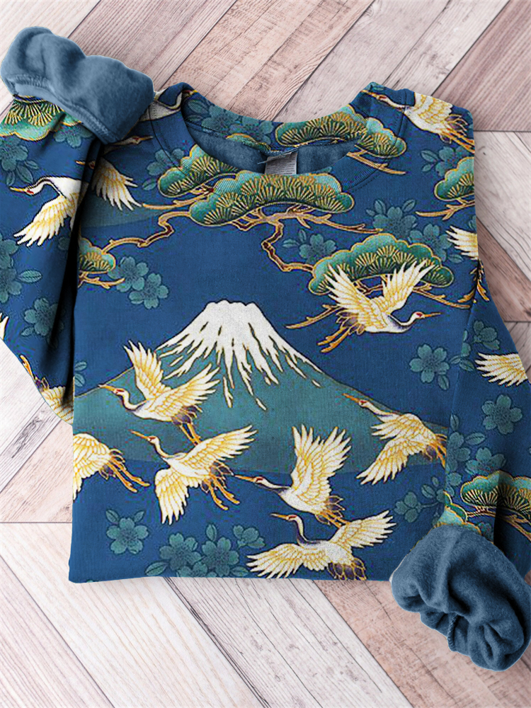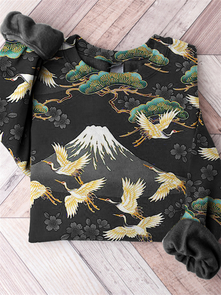 Mount Fuji Cranes Cherry Blossom & Pine Trees Japanese Pattern Sweatshirt