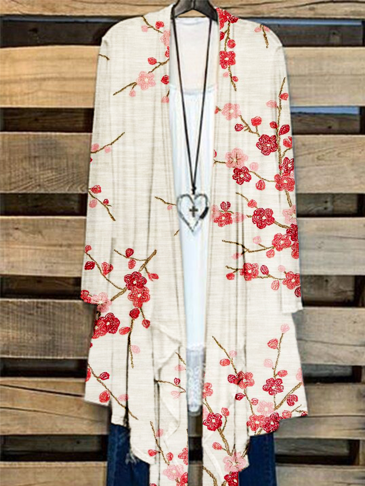 Plum Blossom Embroidered Art Flowy Cardigan