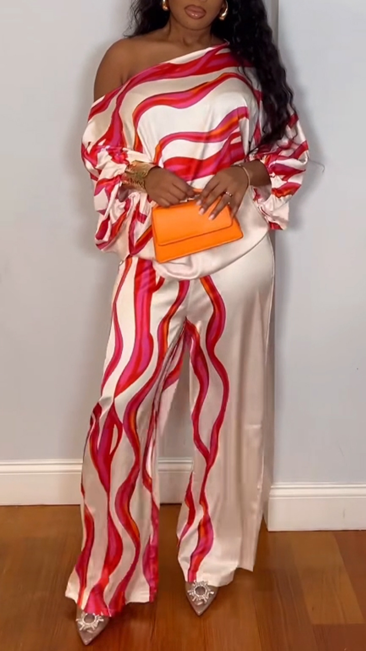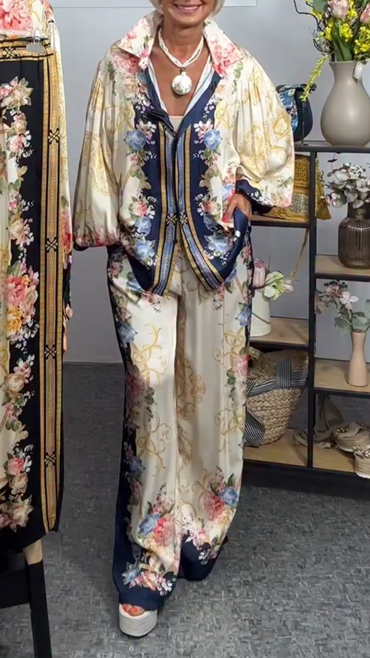 Ladies' Collar Print Elegant Casual Set