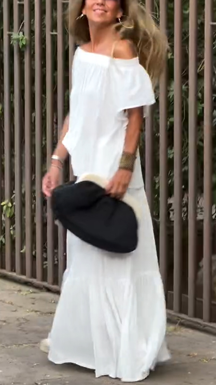 Women's One Neck Top+ Patchwork Skirt Solid Color Casual Set
