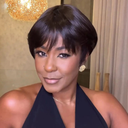 Glueless Short Bob Wigs with Bang Natural Black Color