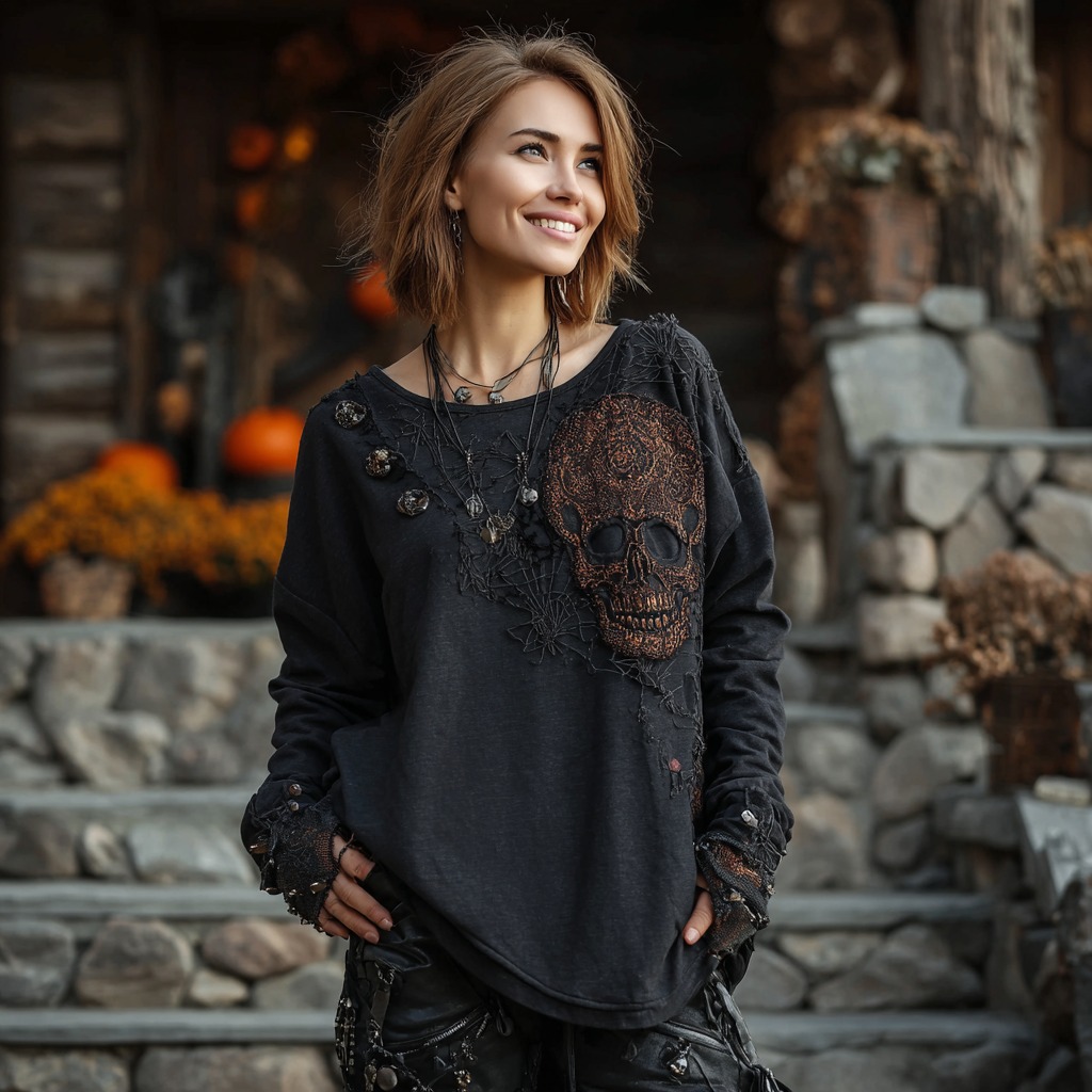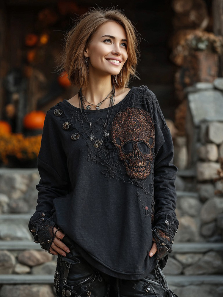 Halloween Dark Skull And Spider Web Pattern Women's T-shirt