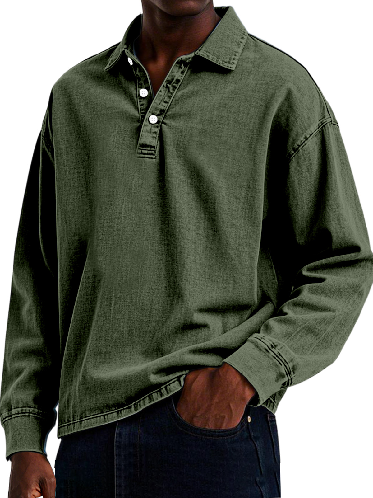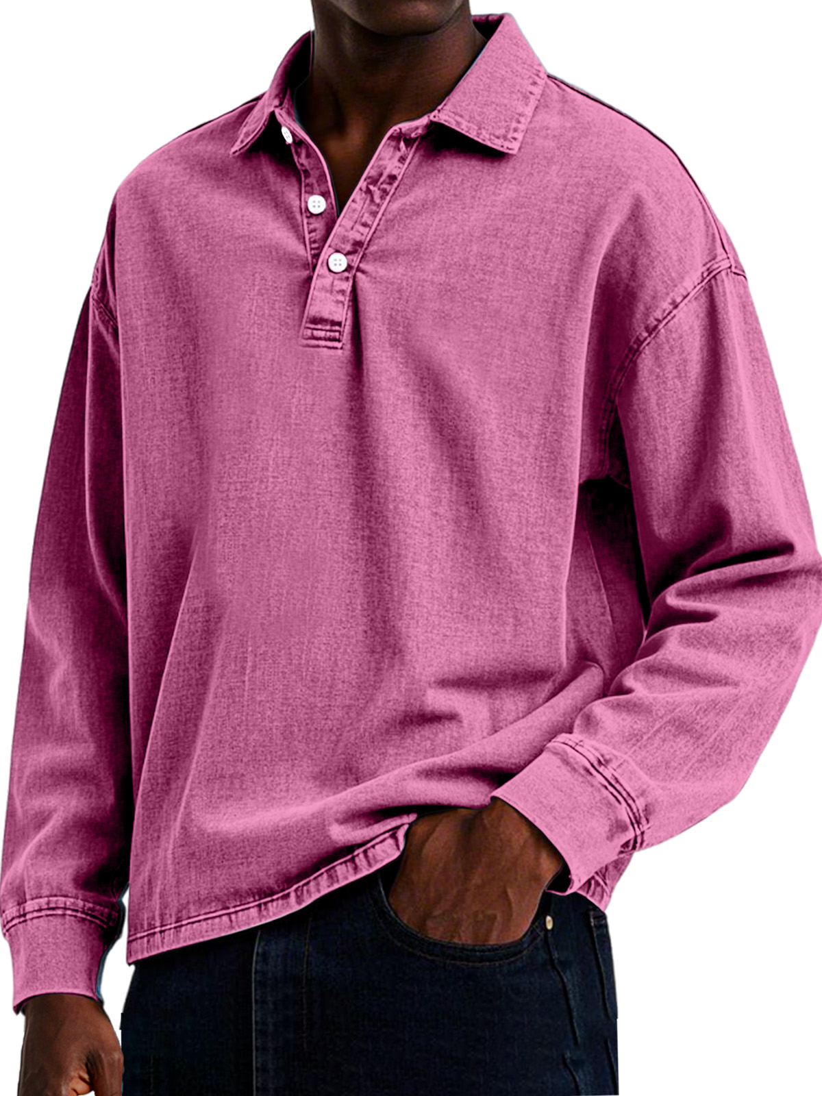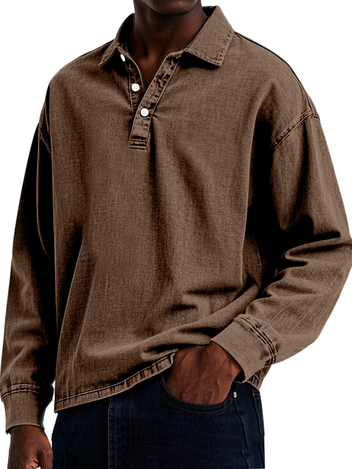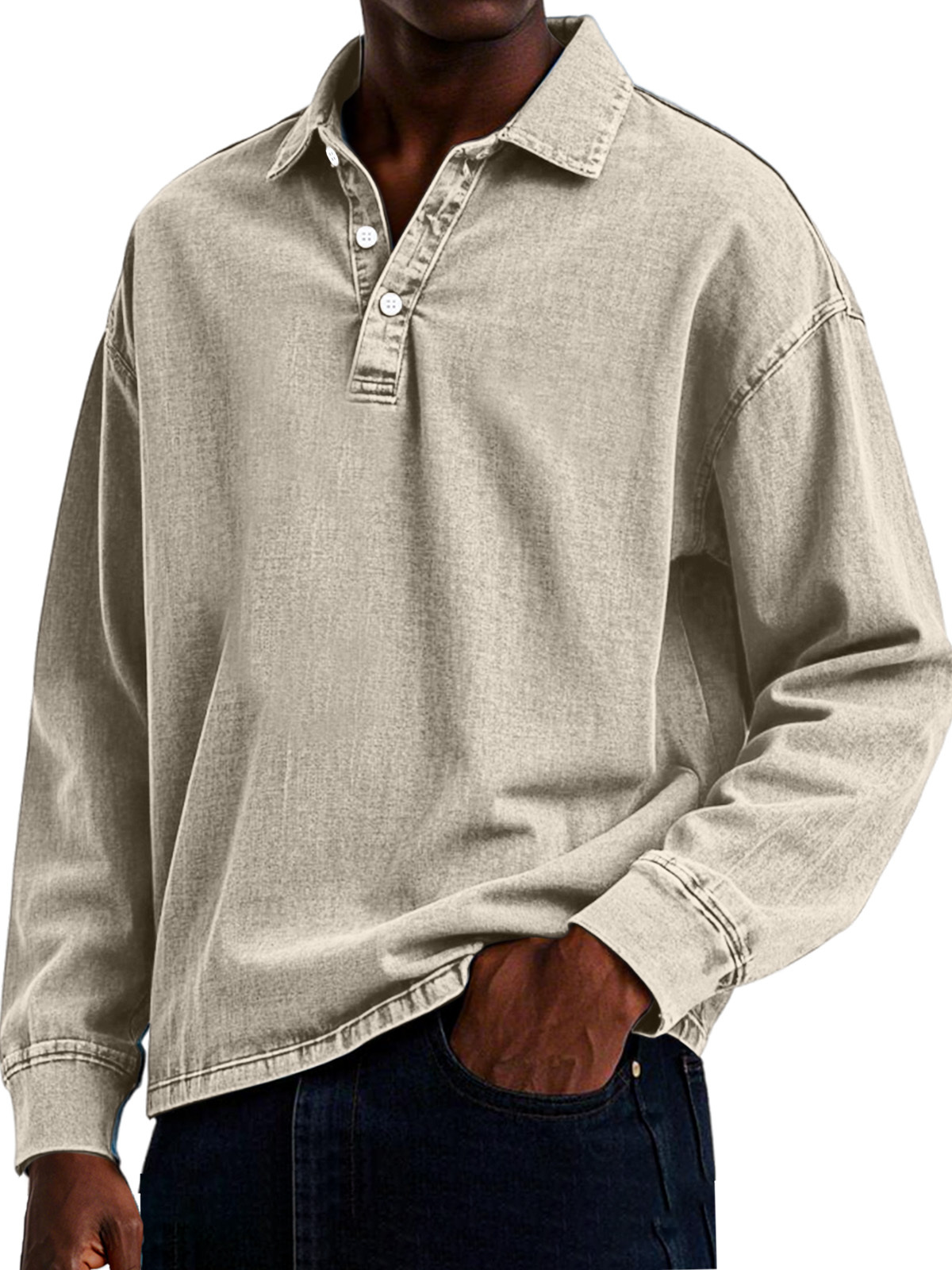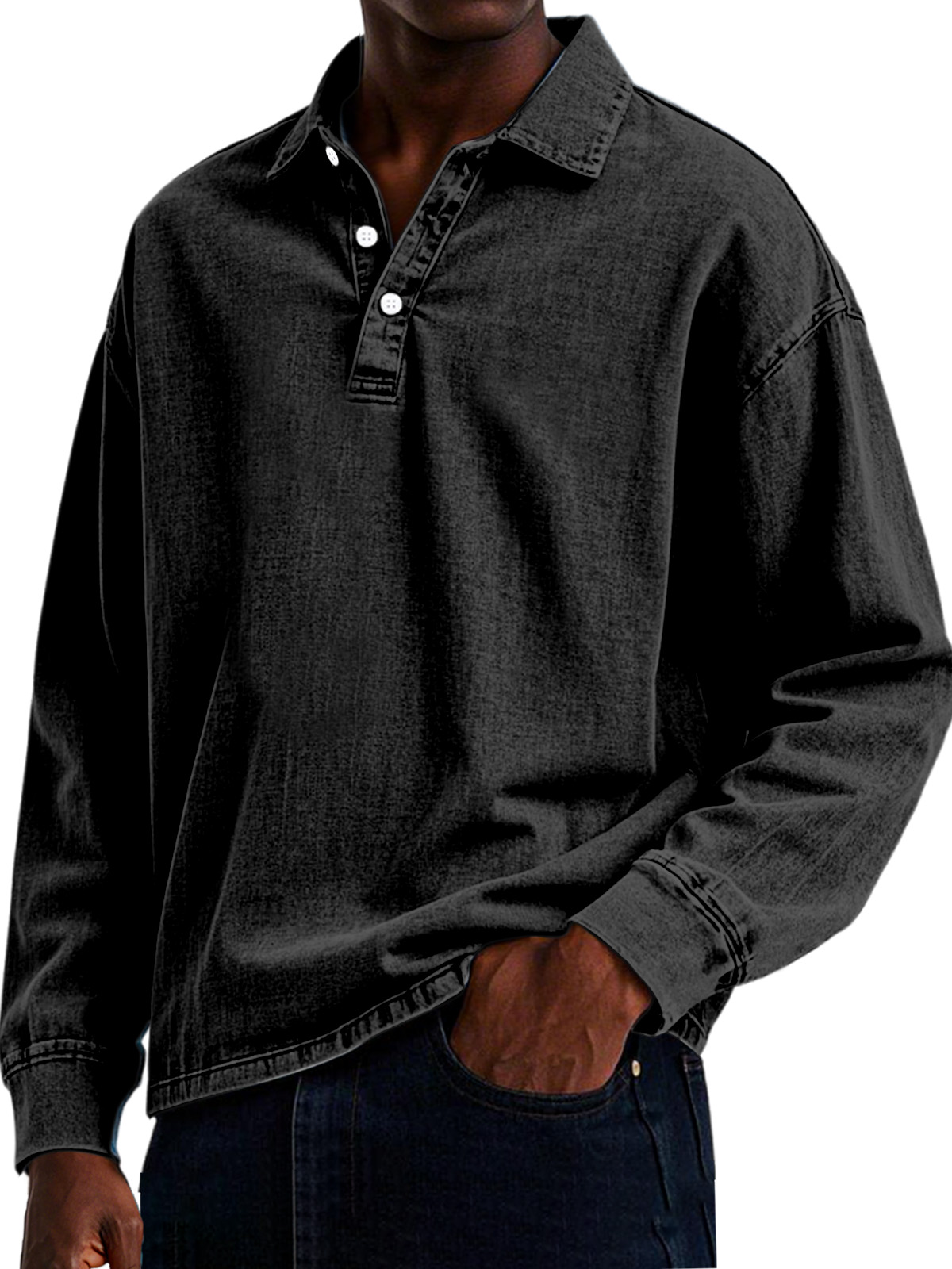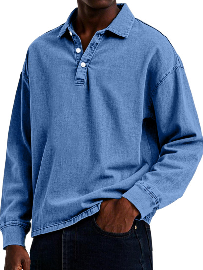 Men's Retro Casual Solid Color Lapel Button Long Sleeve Polo Shirt