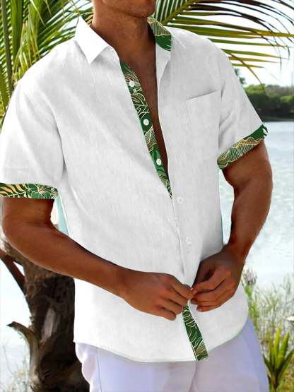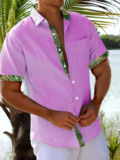 Men's Tropical Floral Print Resort Casual Shirt (With Pockets)