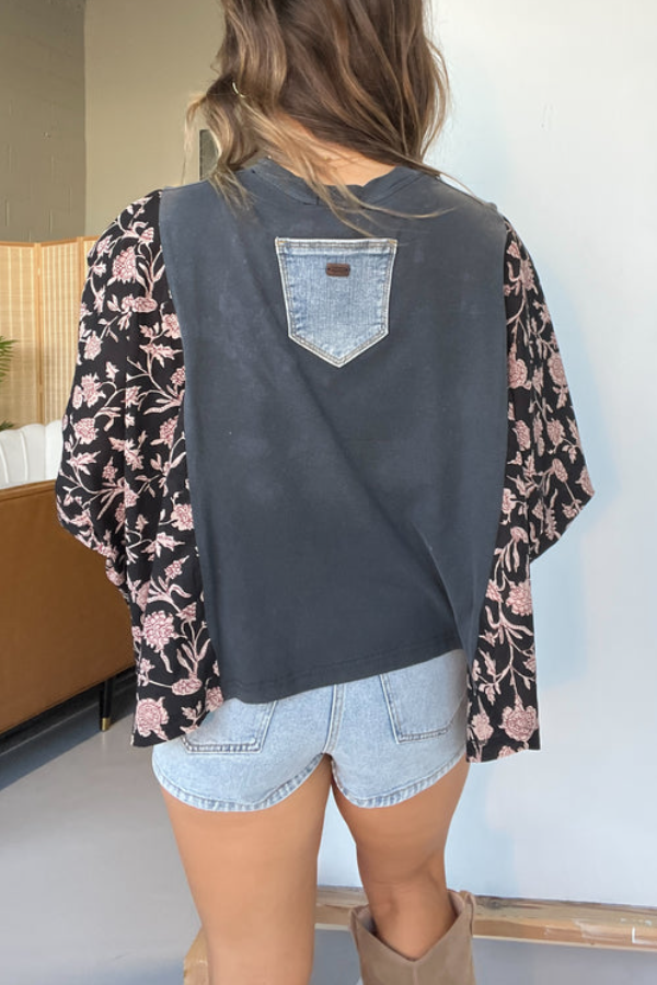 Washed Vintage Graphic Tee with Batwing Sleeve