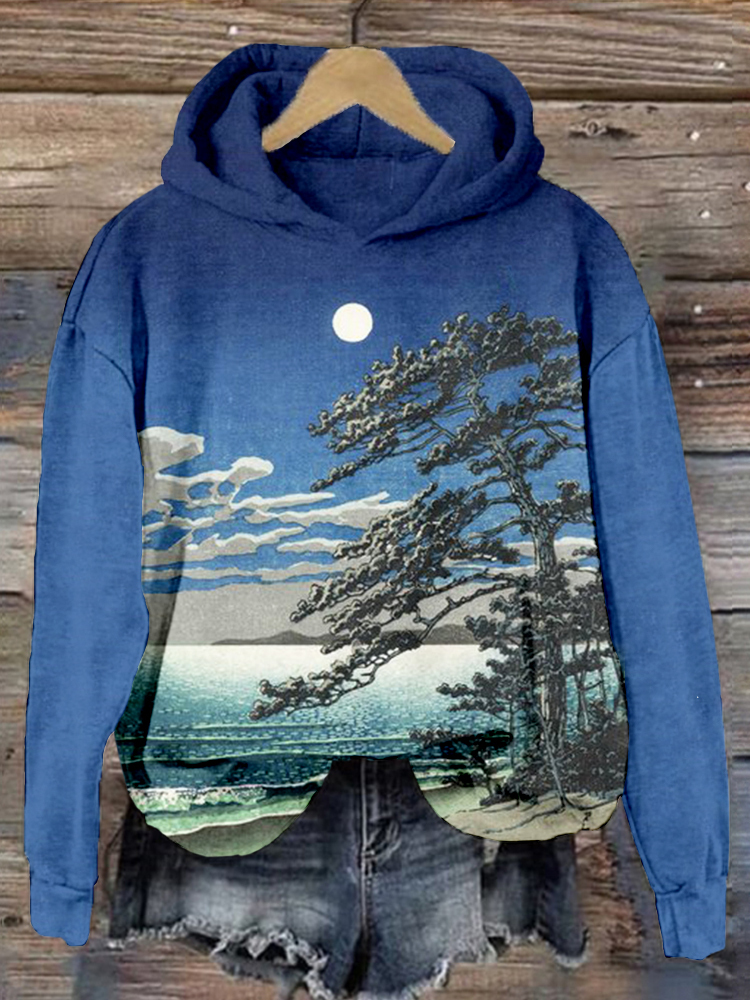 Spring Moon at Ninomiya Beach Japanese Art Hoodie