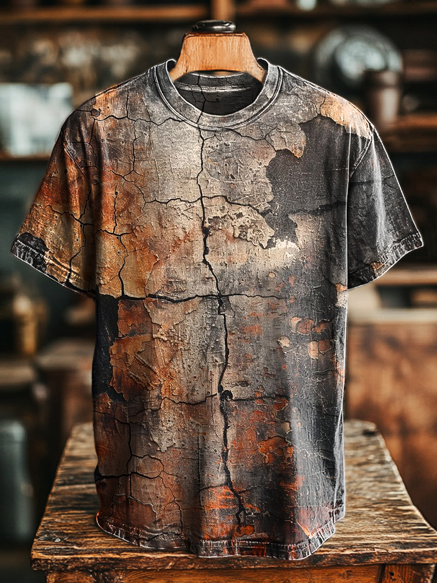 Unisex Retro 3D Cracked Distressed Printed Casual Loose T-shirt