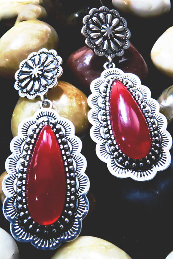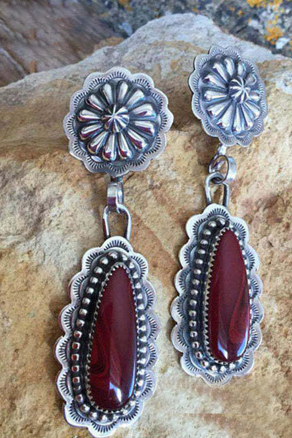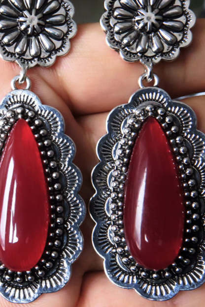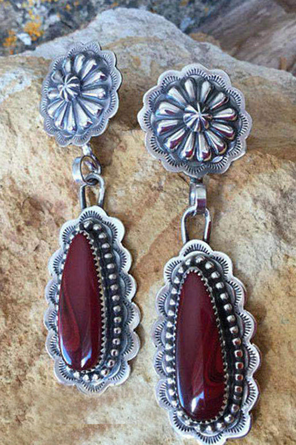 Vintage Inlaid Long Drop Shape Ruby Earrings