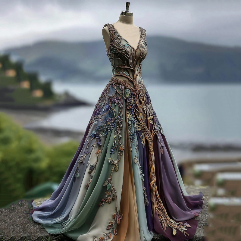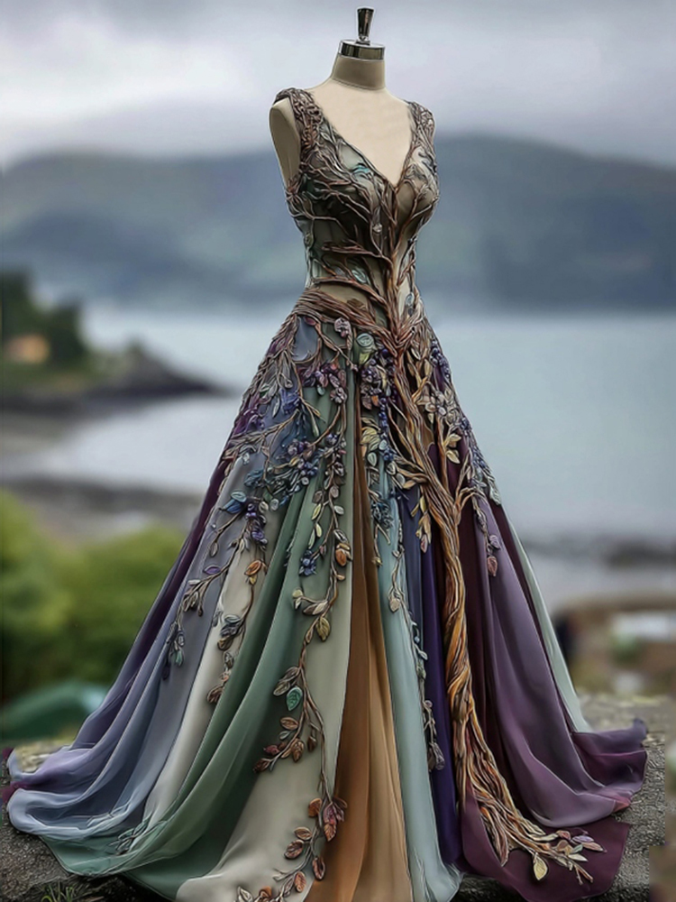 Vintage Viking Tribal Celtic Tree Of Life Gradient Lace Maxi Dress