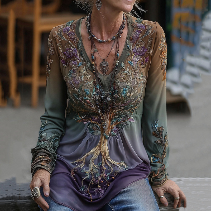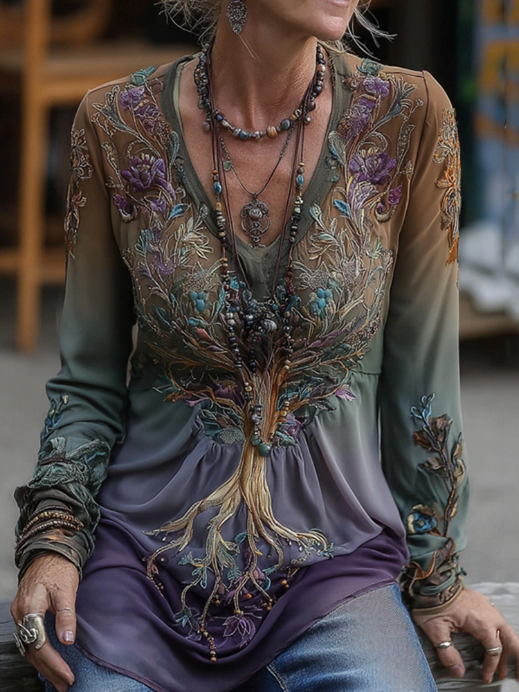 Vintage Viking Tribal Celtic Tree Of Life Gradient V Neck Shirt