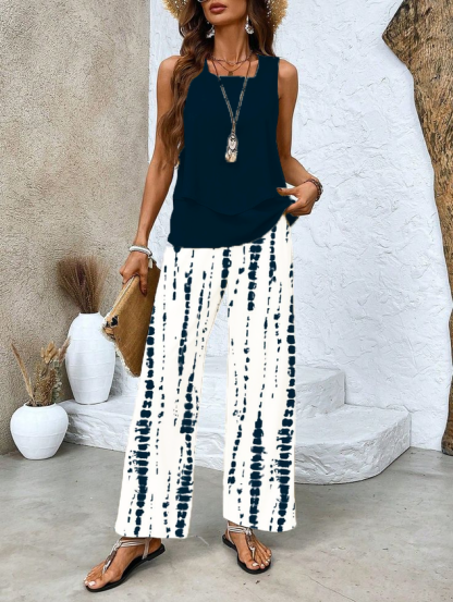 Women's Abstract Stripes Printing Two-Piece Set Daily Sleeveless Casual Summer Top With Pants Matching Set