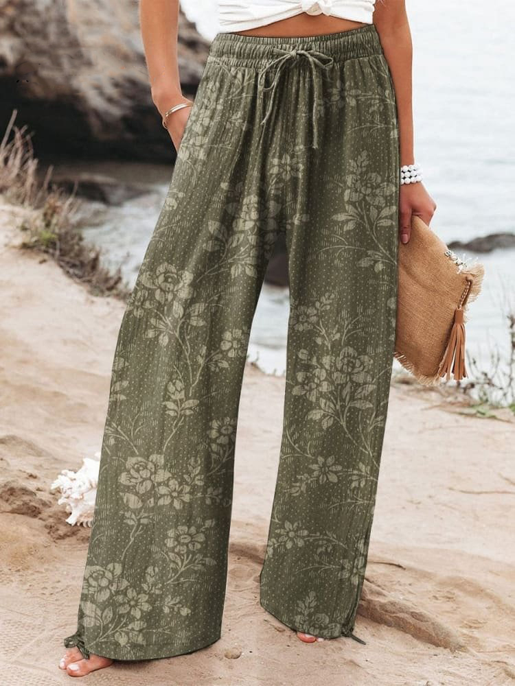 Women's Floral Art Printed Cotton And Linen Casual Pants