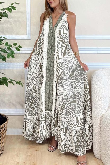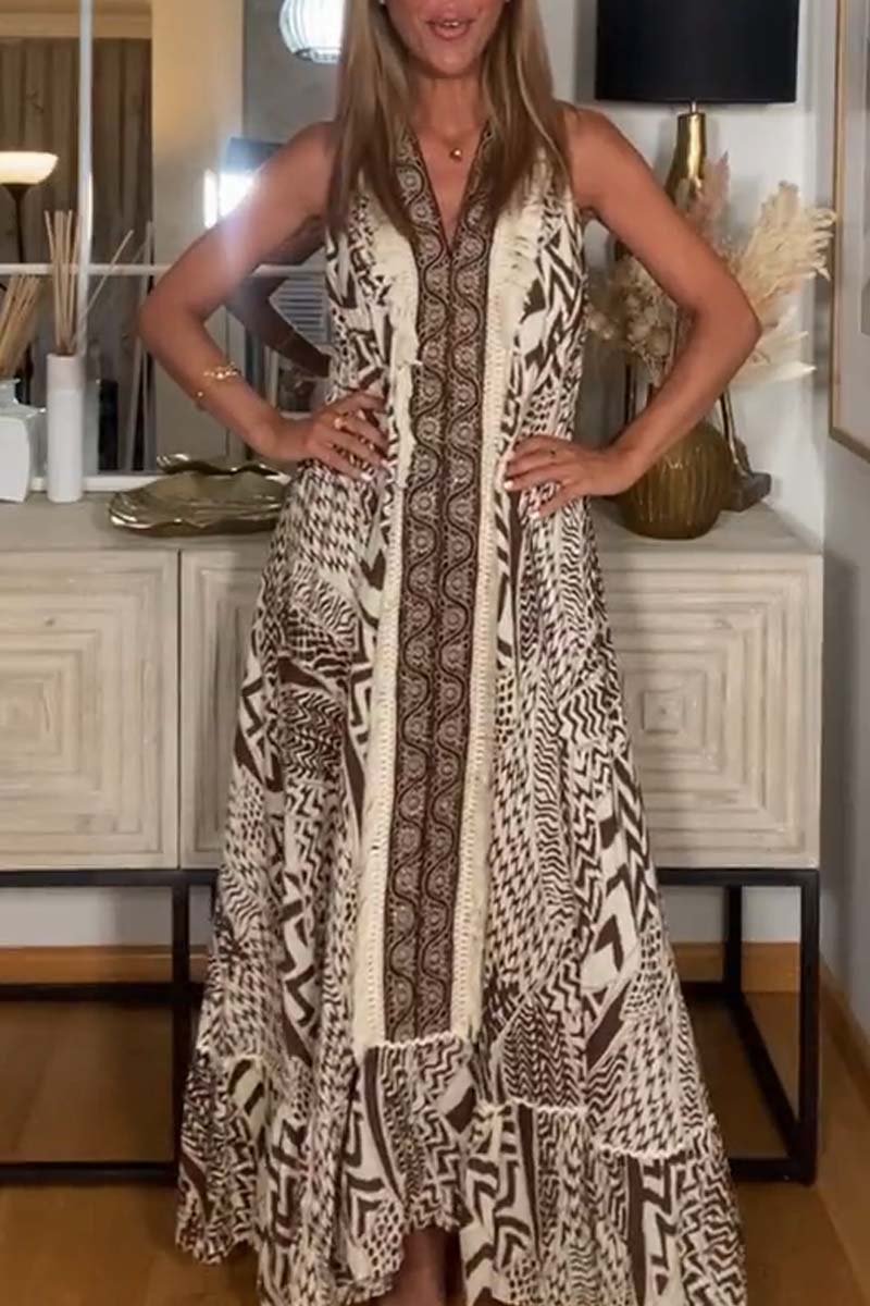 Women's holiday ethnic print suspender Dress