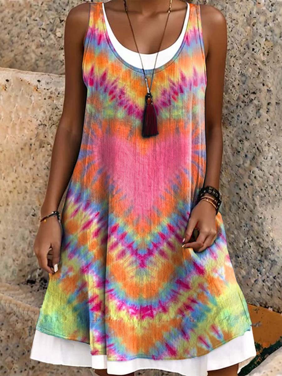 Women's Tie-Dye Heart Pattern Art Print Dresses