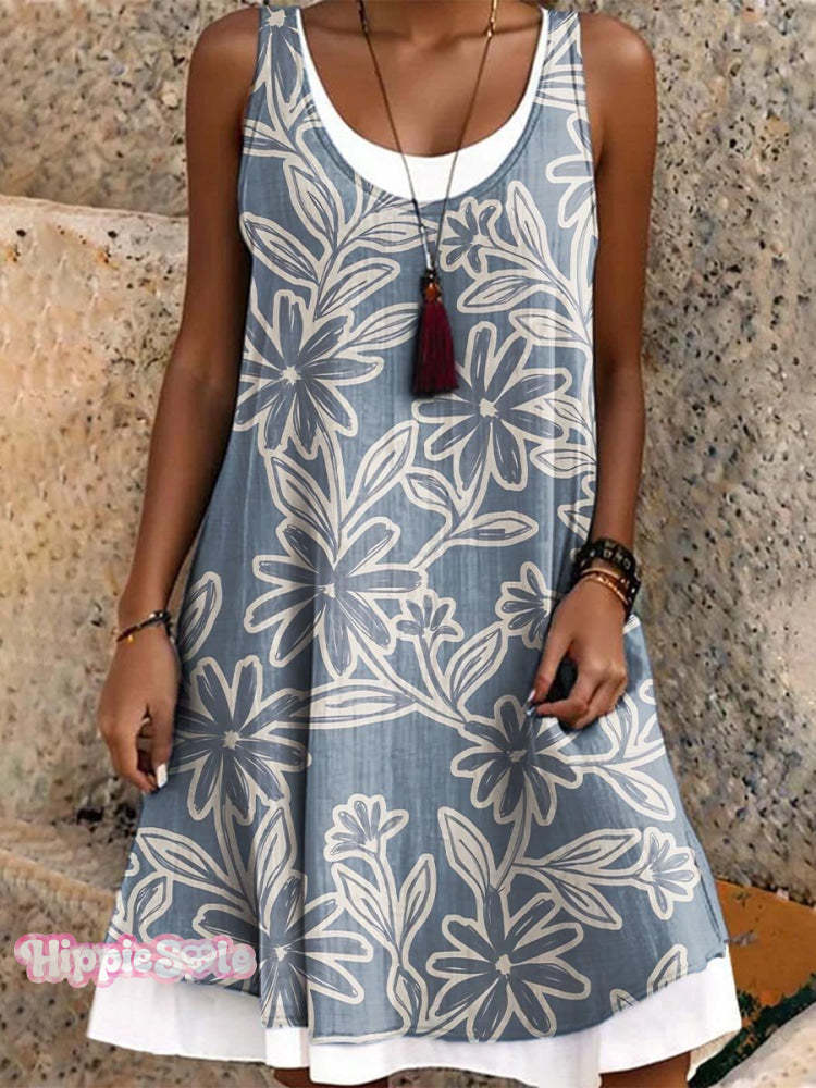 Women's Vacation Casual Loose Splicing Flowers Art Print Dress