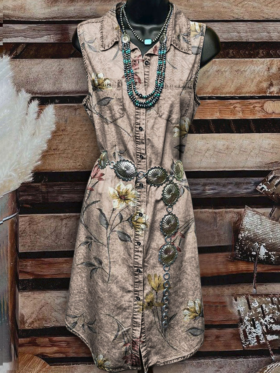 Women's Vintage Floral Print Casual Sleeveless Dress