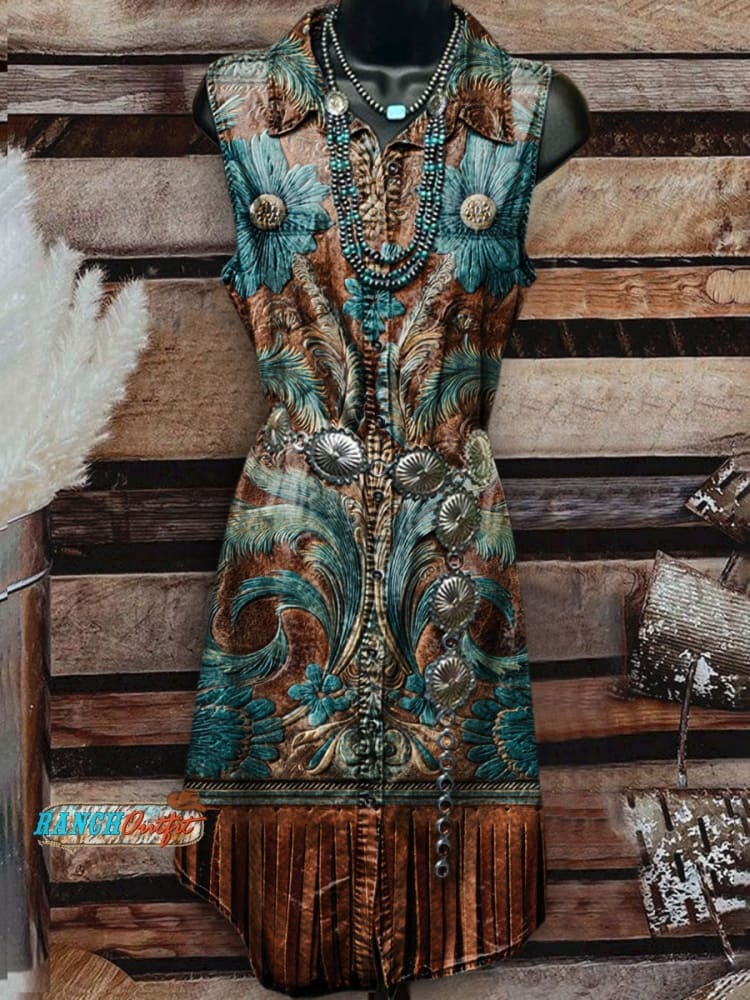 Women's Vintage Floral Print Casual Sleeveless Dress