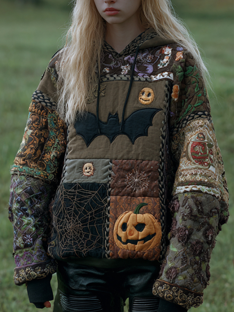 Women's Vintage Patchwork Halloween Pattern Hoodie