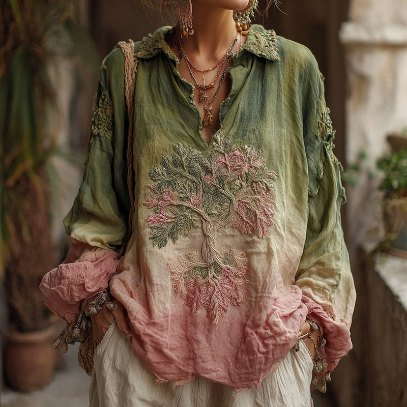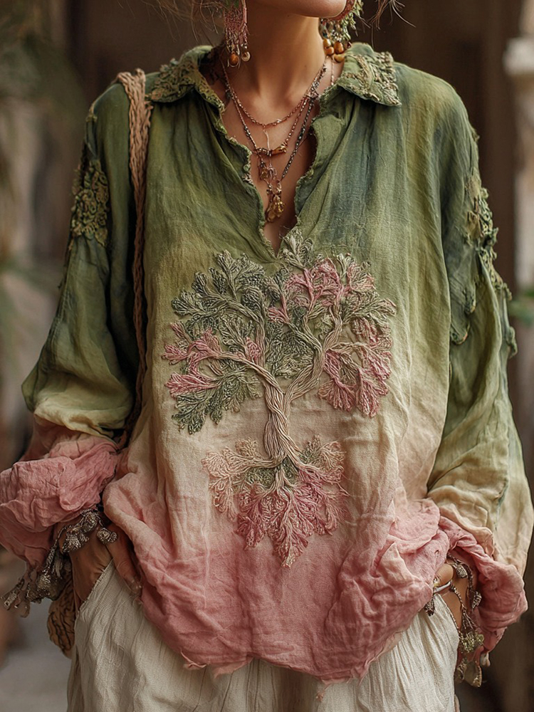 Women's Vintage Viking Tree Of Life Gradient Linen Shirt