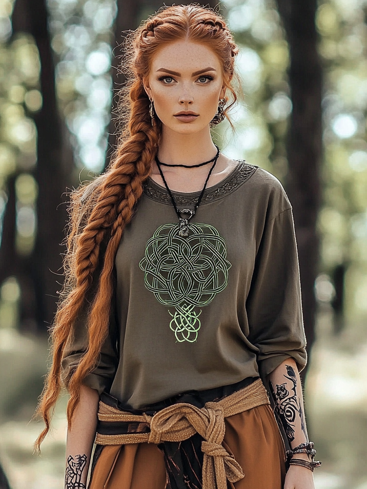 Women's Vintage Viking Tree Of Life Linen Crew Neck Shirt