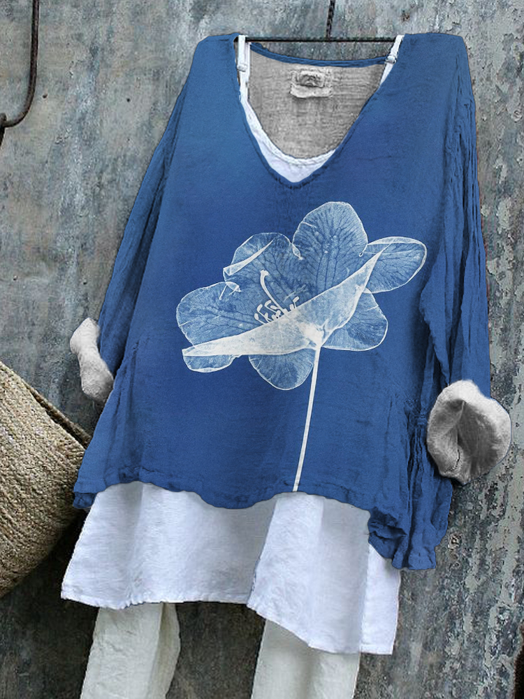 Botanical Dye Flower Print Flowy Tunic
