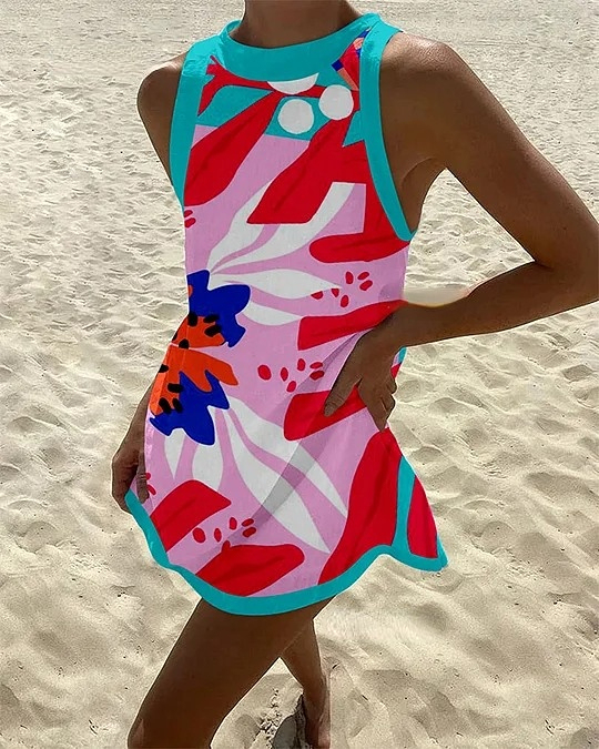 Colorful Print Sleeveless Mini Dress