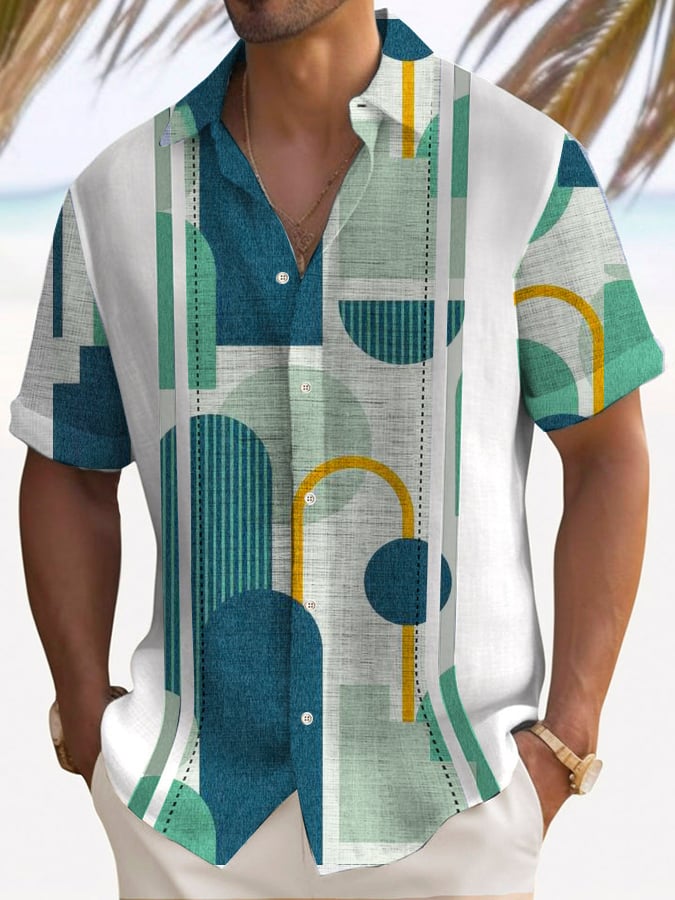 Fashion Holiday Contrast Printed Men's Short Sleeve Shirt