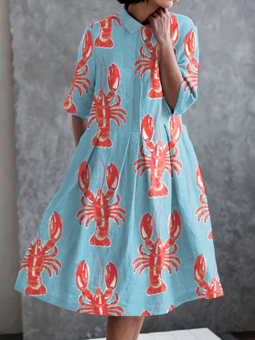 Holiday Abstract Lobster Print Casual Pocket Half Sleeve Dress