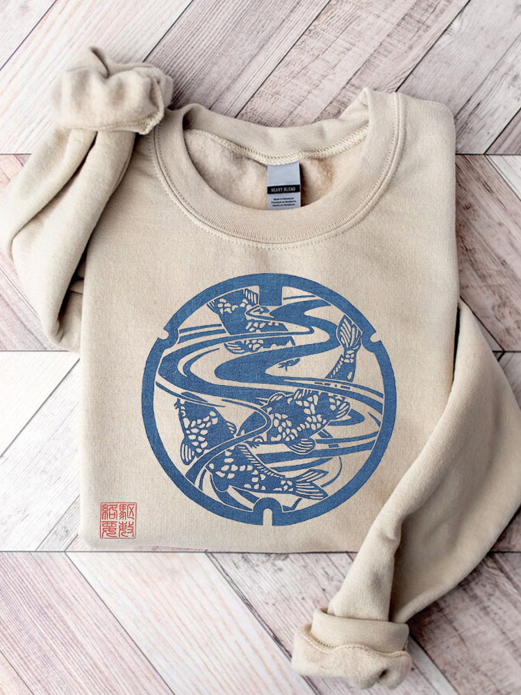 Japanese Koi Traditional Art Print Casual Sweatshirt