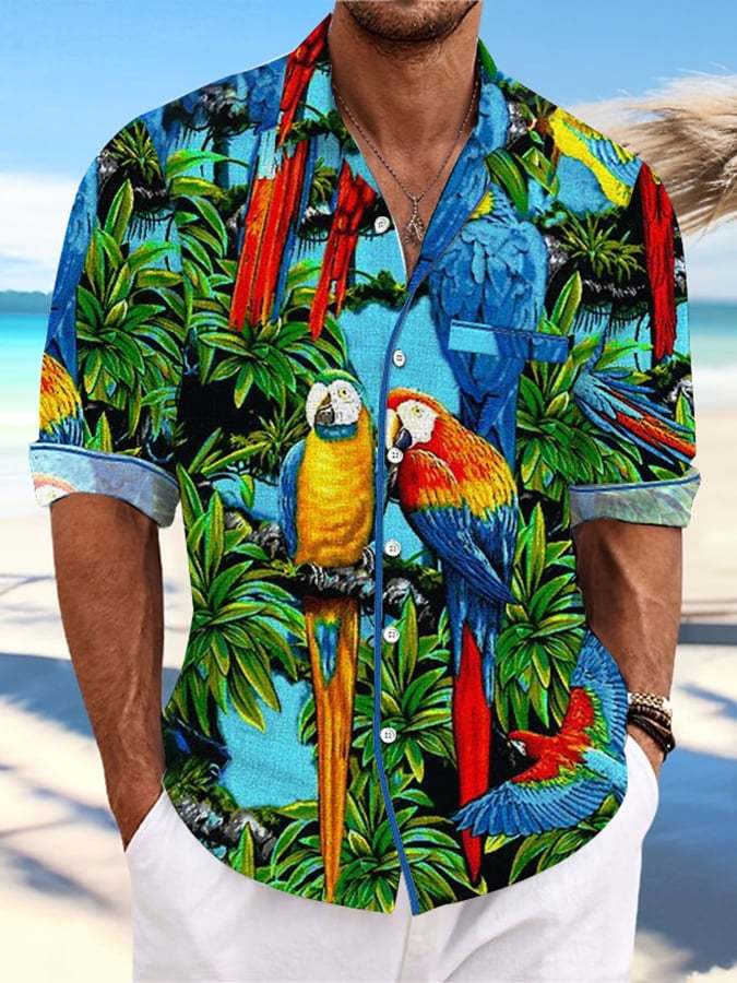 Men's Casual Hawaiian Parrot Print Lapel Shirt
