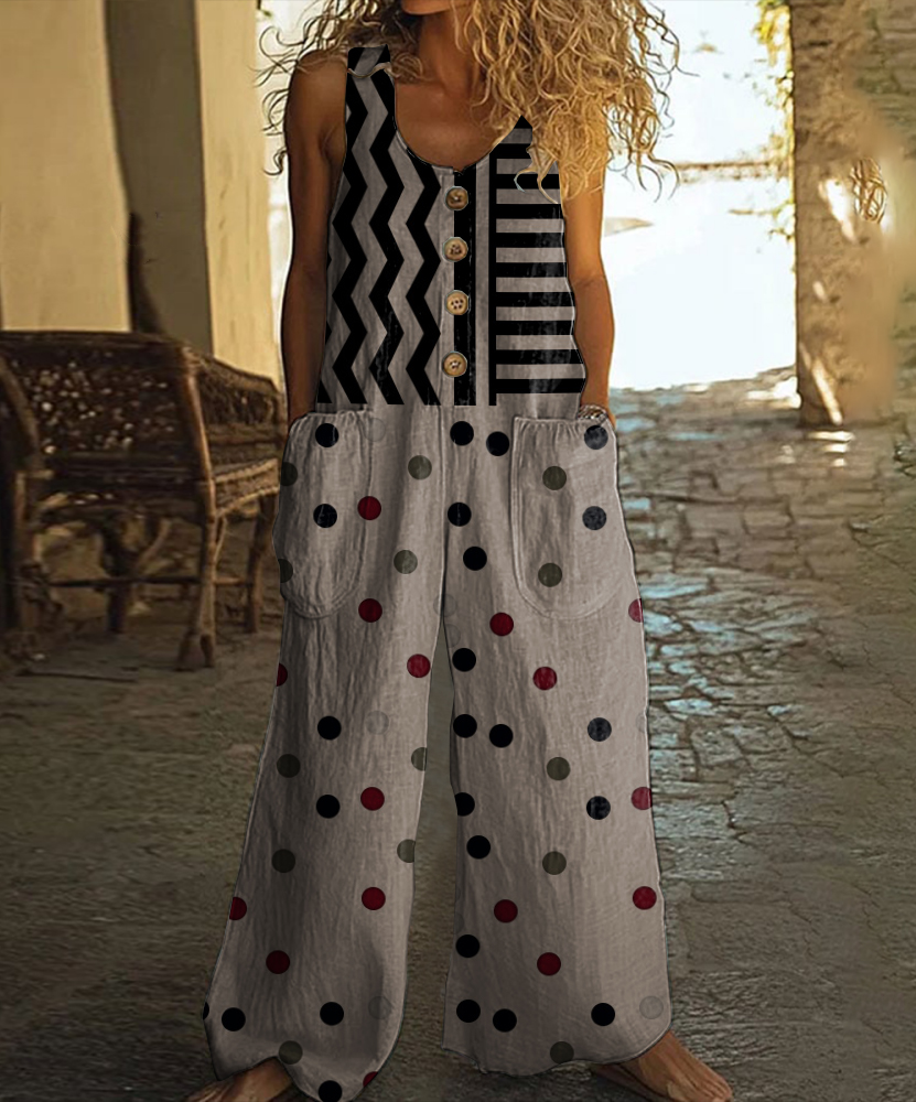 Retro Abstract Geometric Art Print Casual Wide Leg Jumpsuit