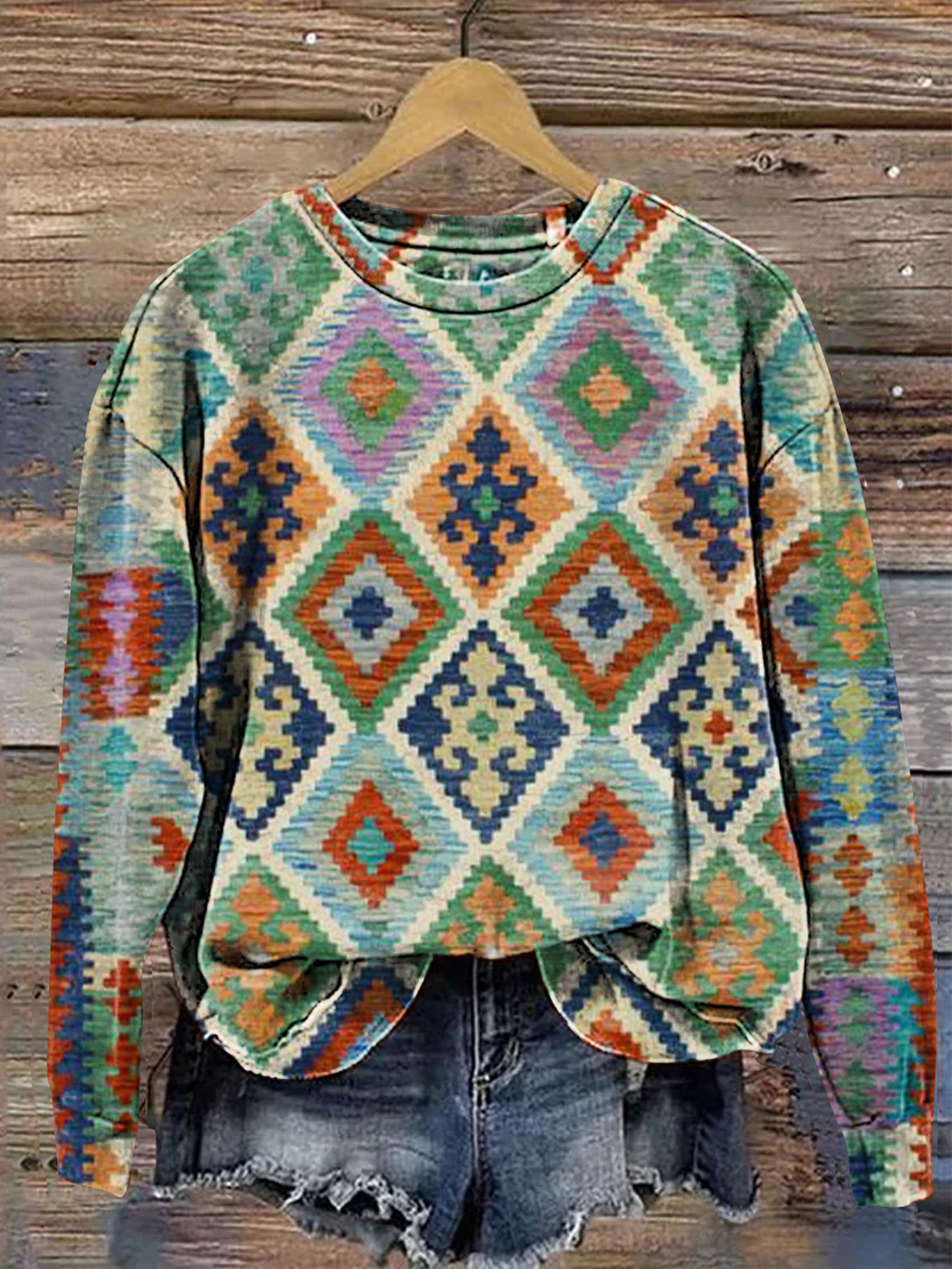 Vintage Ethnic Abstract Geometric Art Print Casual Sweatshirt