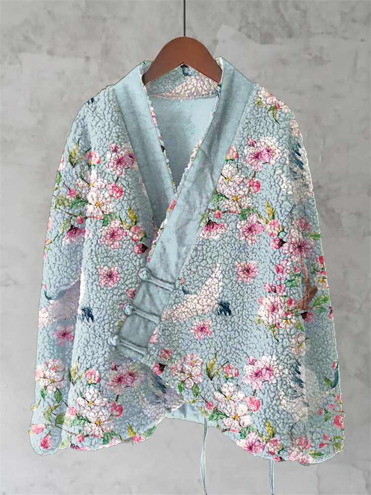 Vintage Japanese Crane Floral Art Wool Kimono Cardigan