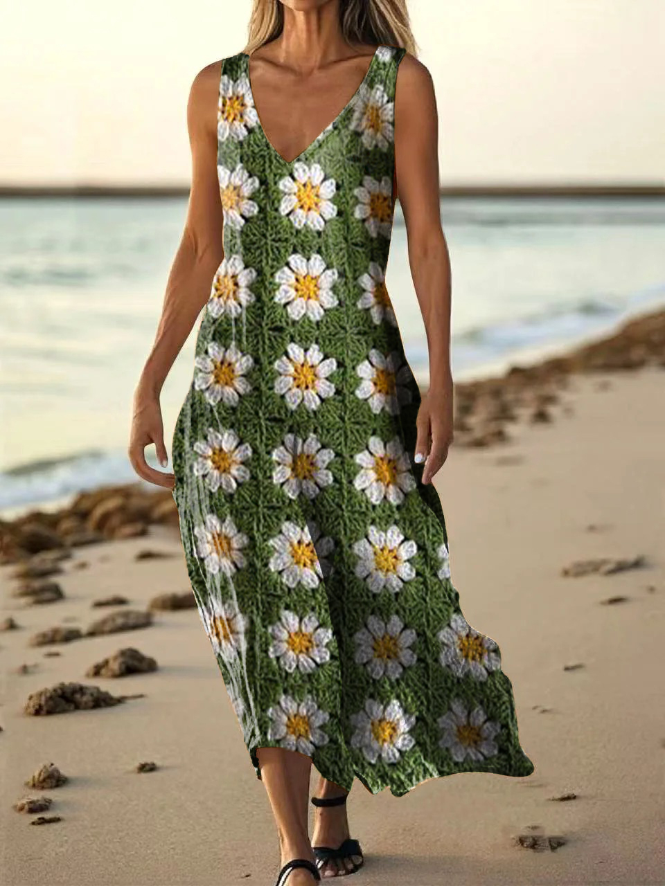 Women's Bohemian Floral Art Print Pocket Cotton Dress