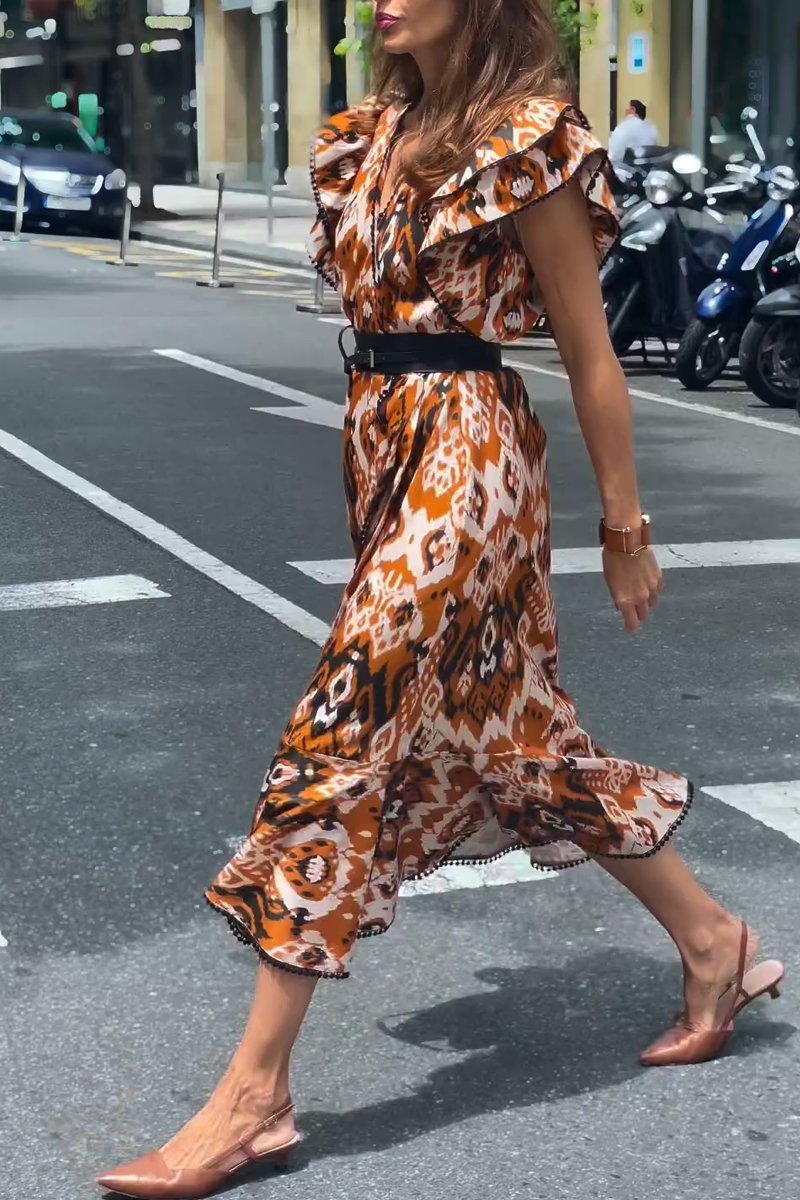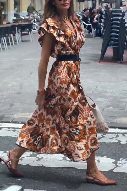 Women's casual printed V-neck dress