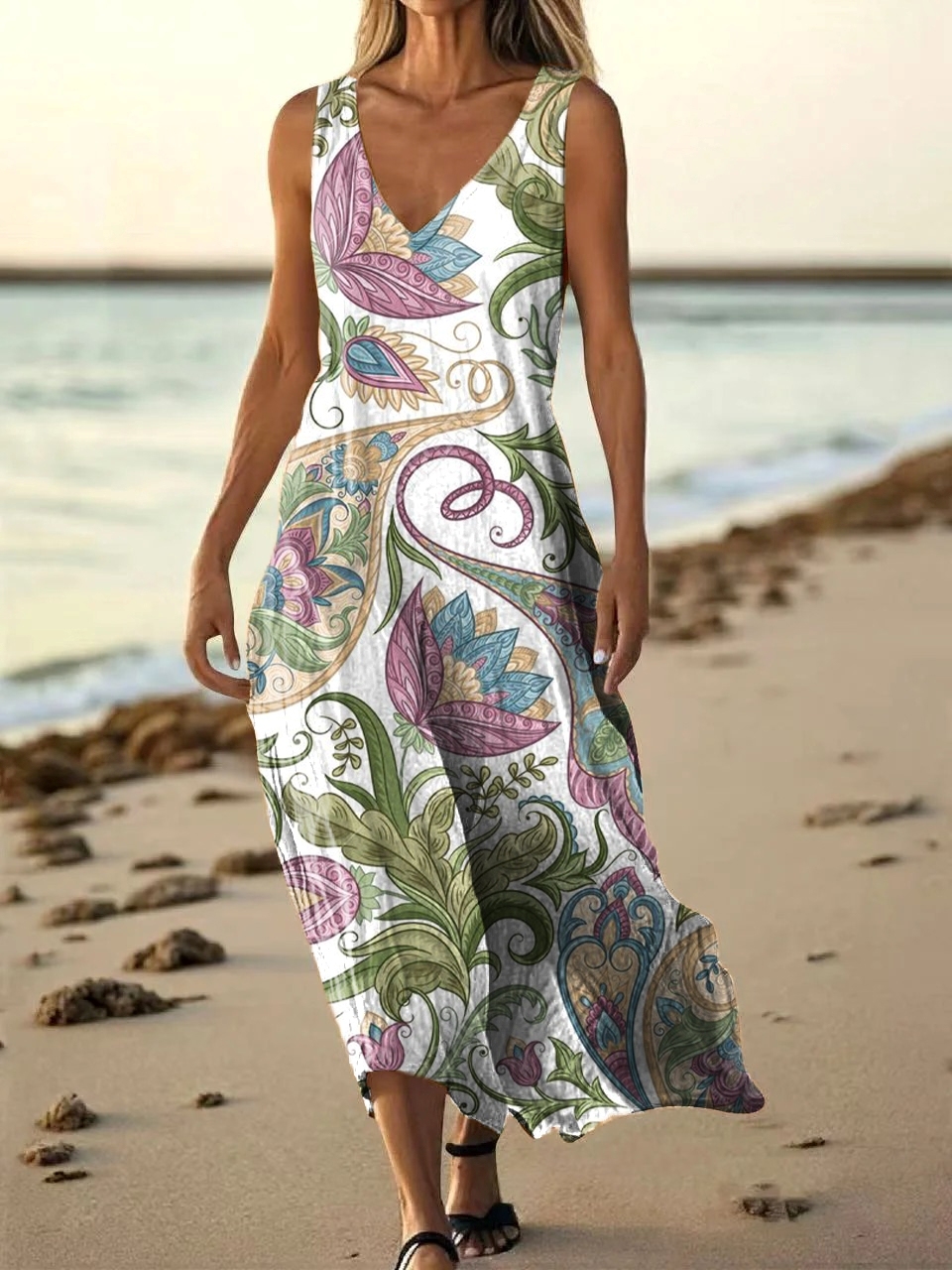 Women's Ethnic Floral Pattern Art Print Pocket Cotton Dresses